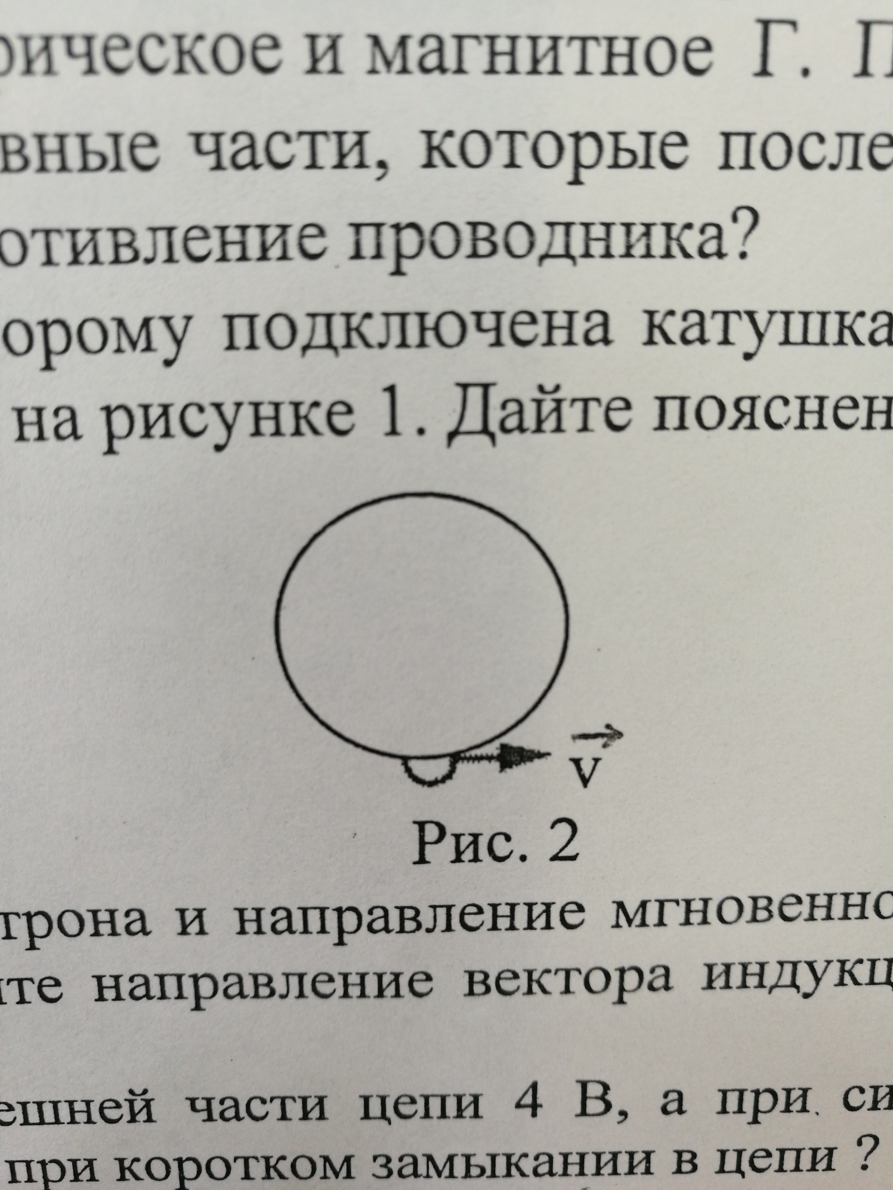 На рисунке показана траектория движения электрона и направление мгновенной скорости его движения в однородном магнитном поле. Определите направление вектора индукции этого поля. Дайте пояснения.