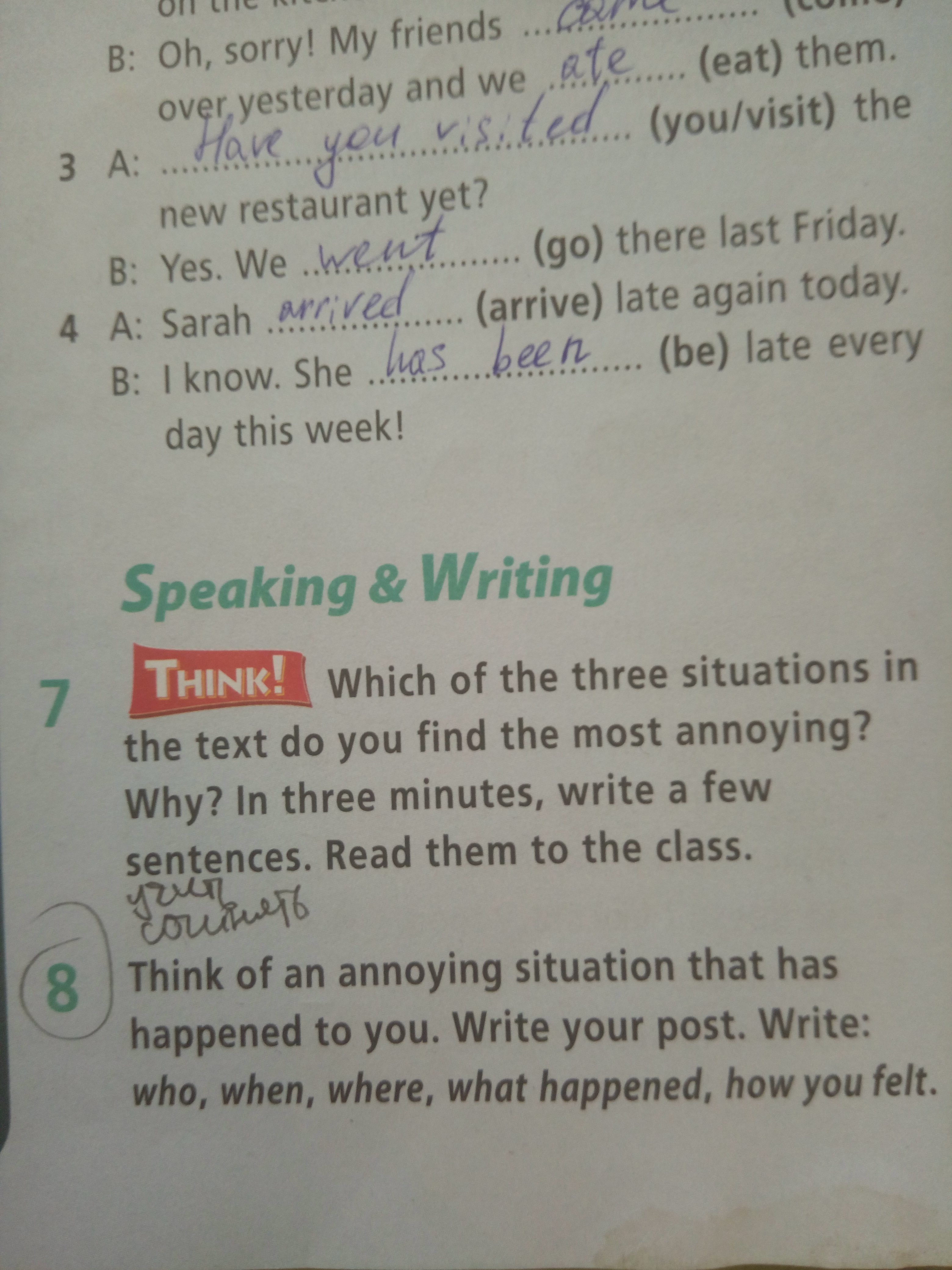 An annoying situation has happened to me. My friend and I went to the cinema. It was on holidays. I visited my friend in an other town. We have not seen for a long time. The cinema was closed. We felt very upset. We wanted to see that film very much.
