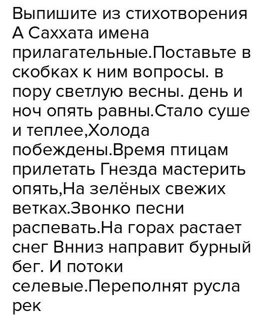 выпишите из стихотворения А.Саххата Весна имена прилагательные.Поставьте в скобках к ним вопросы