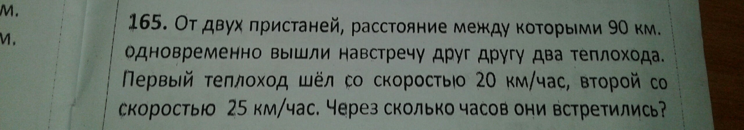 каталог пристаней расстояние между которыми 90 км одновременно вышли навстречу друг другу два теплохода первый теплоход шел со скоростью 2 км ч 2 со скоростью 25 км ч через сколько часов они встретились