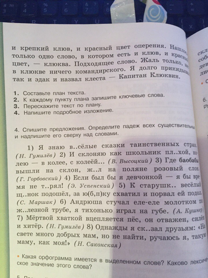 4. Спишите предложения. Определите падеж всех существительных и надпишите его сверху над словами. Под точкой. Какая орфограмма имеется в выделенном слове ? Каково лексическое знание этого слова ?