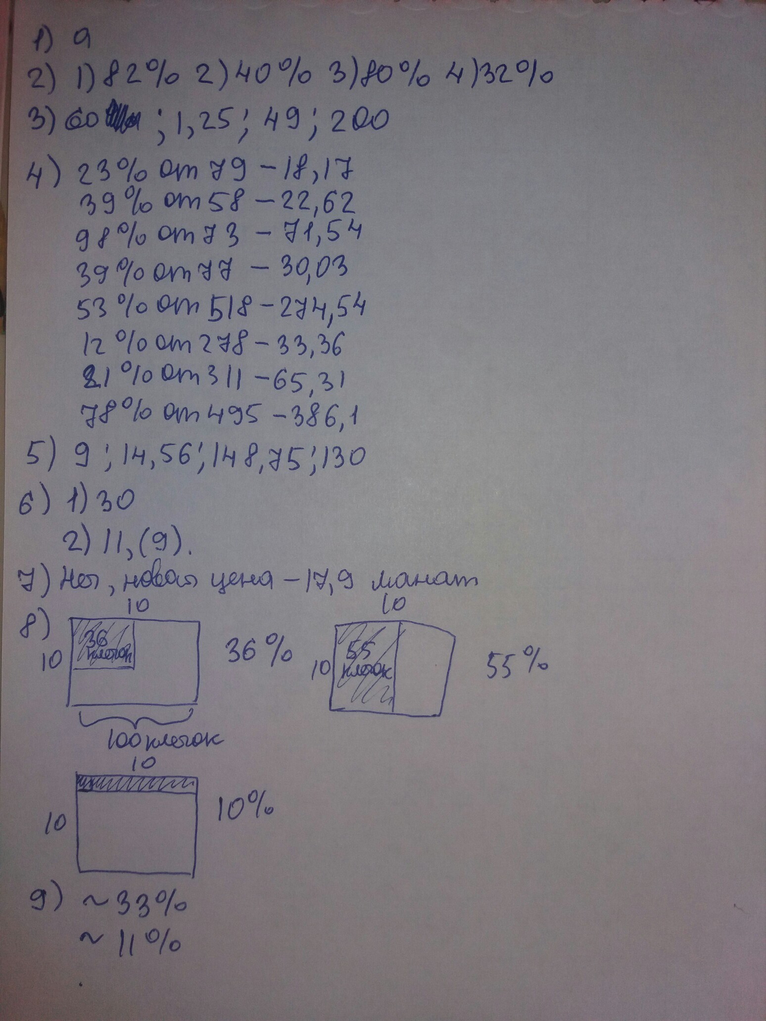 В 8 задании в каждом квадрате должно быть 100 клеток из н к закрашены 36 клеток и так далее....