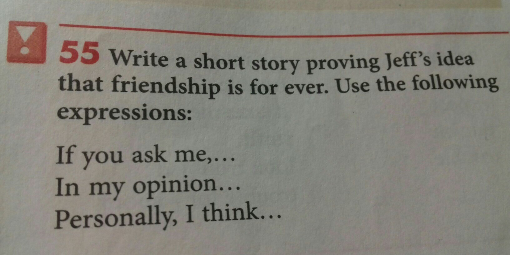 напишите рассказ, подтверждающий идею Джеффа о том, что дружба навсегда. Используйте следующие выражения: Если вы спросите меня По-моему ... Лично я думаю