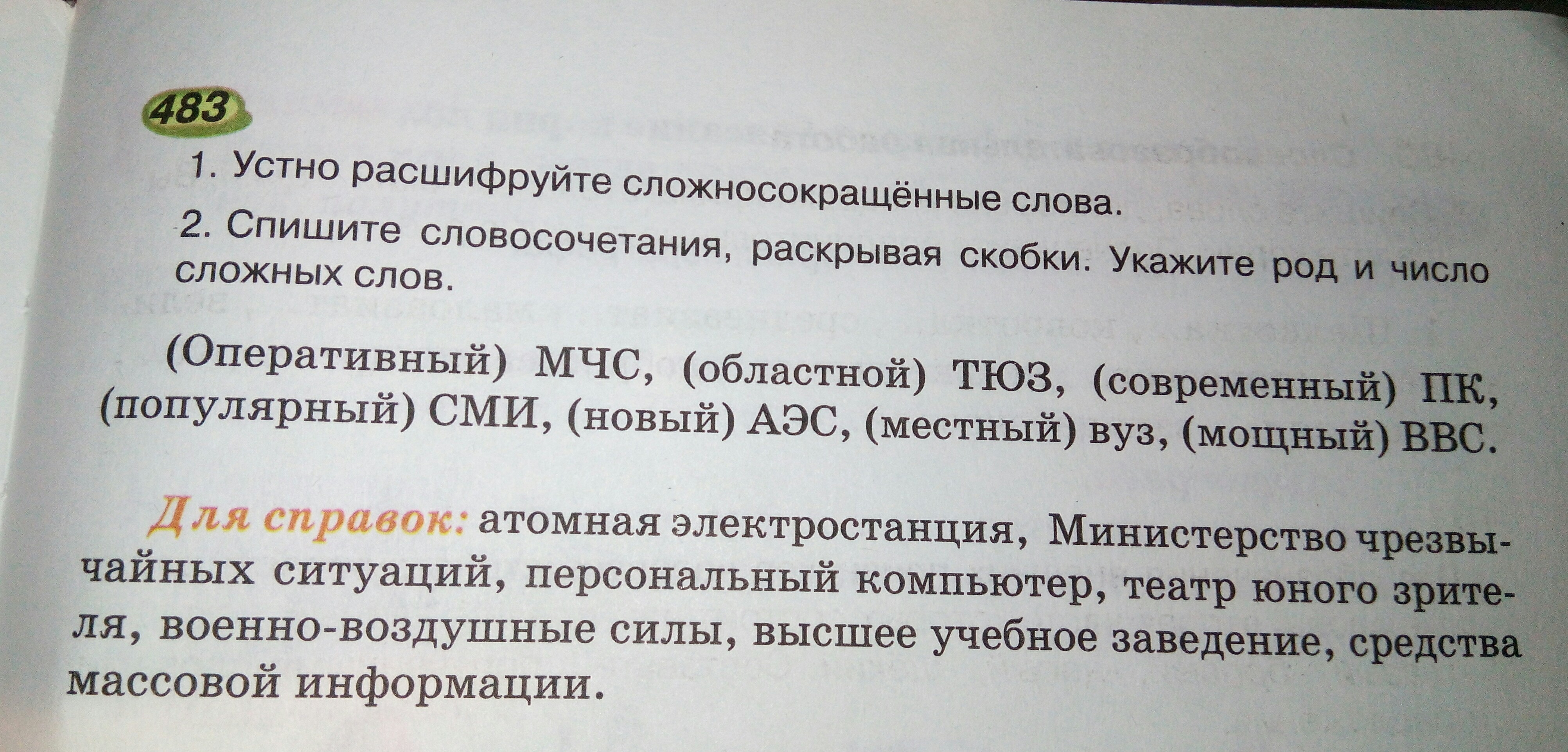 МЧС - Министерство чрезвычайных ситуаций, ТЮЗ-театр юного зрителя, ПК- персональный компьютер, СМИ - средства массовой информации , АЭС - атомная электростанция, вуз - высшее учебное заведение, ВВС - военно-воздушные силы