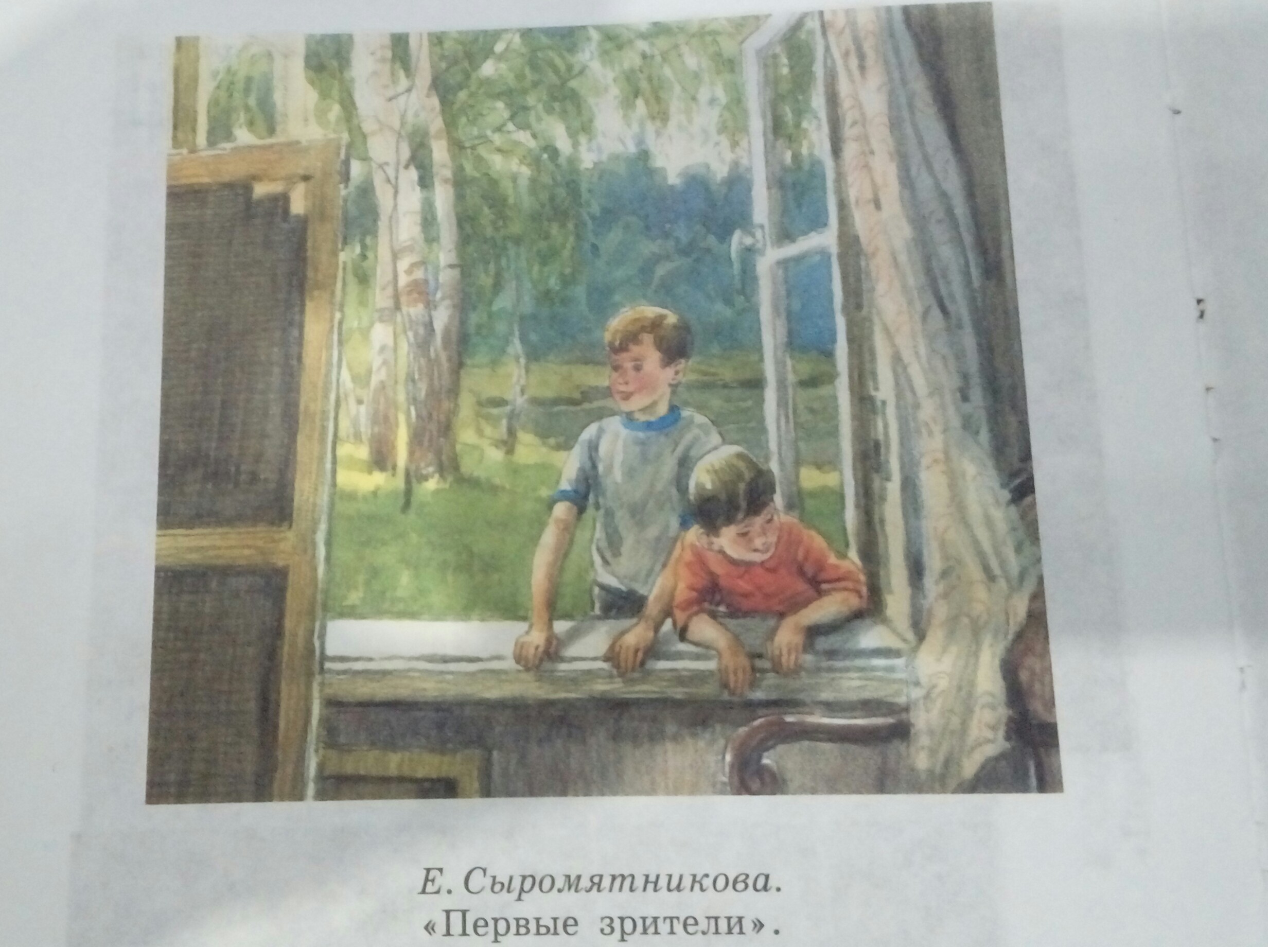 SOS!!! Срочно помогите пожалуйста, написать сочинение по русскому языку за 6 класс. По картине Е. В. Сыромятниковой " Первые зрители." Адресат вашего сочинения - одноклассник. Рассмотрите внимательно мальчиков, комнату, в которой живет художник, вид, который открывается вам ищ распахнутого окна. Можно ли предположить, что изображено художником на картине.