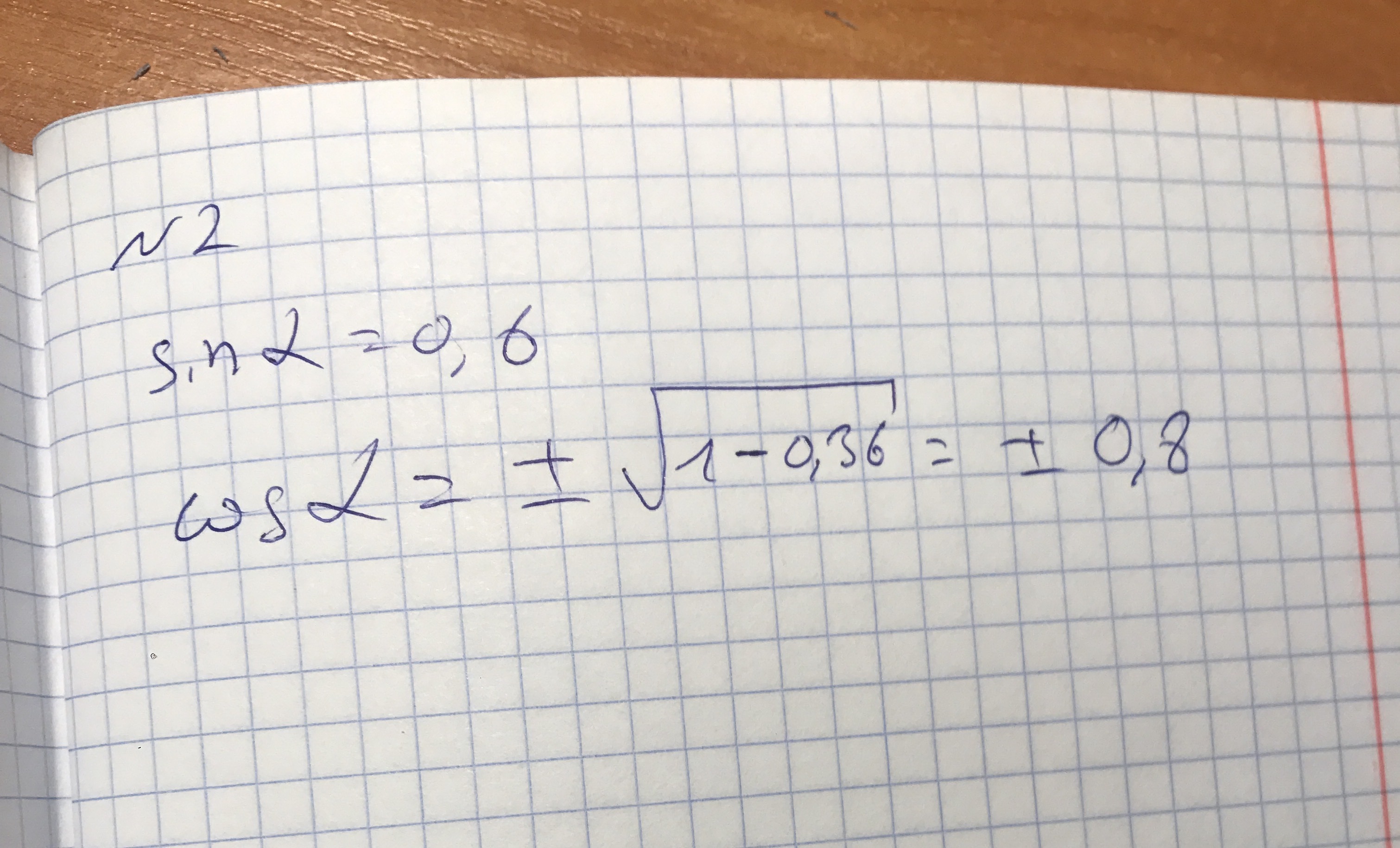 Вычислить cos(a) , если sin(a) = 0,6 , а 0