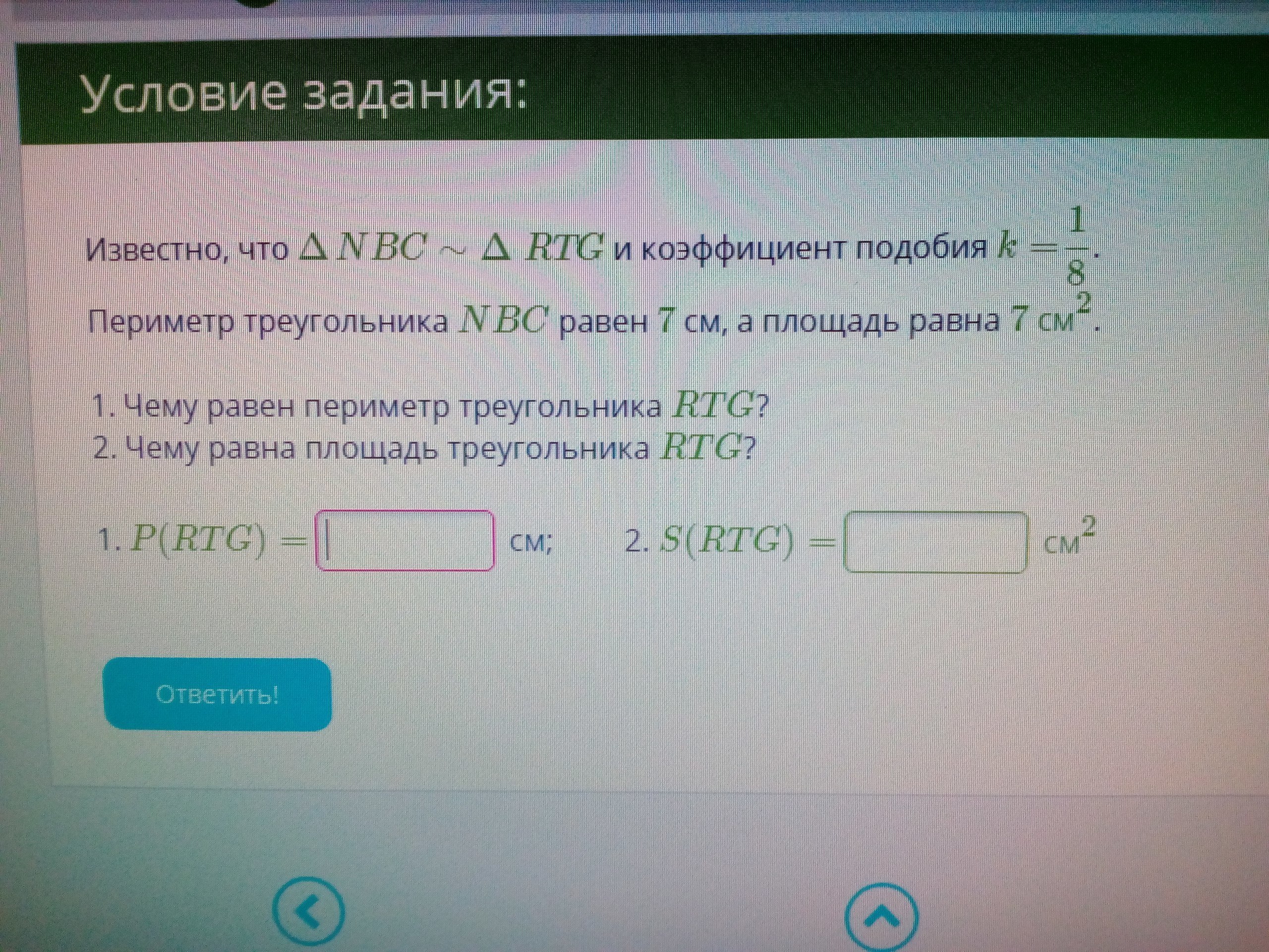 2) S1/S2=k^2, значит S(RTG)=S(NBC)/k^2=7:1/64=448
