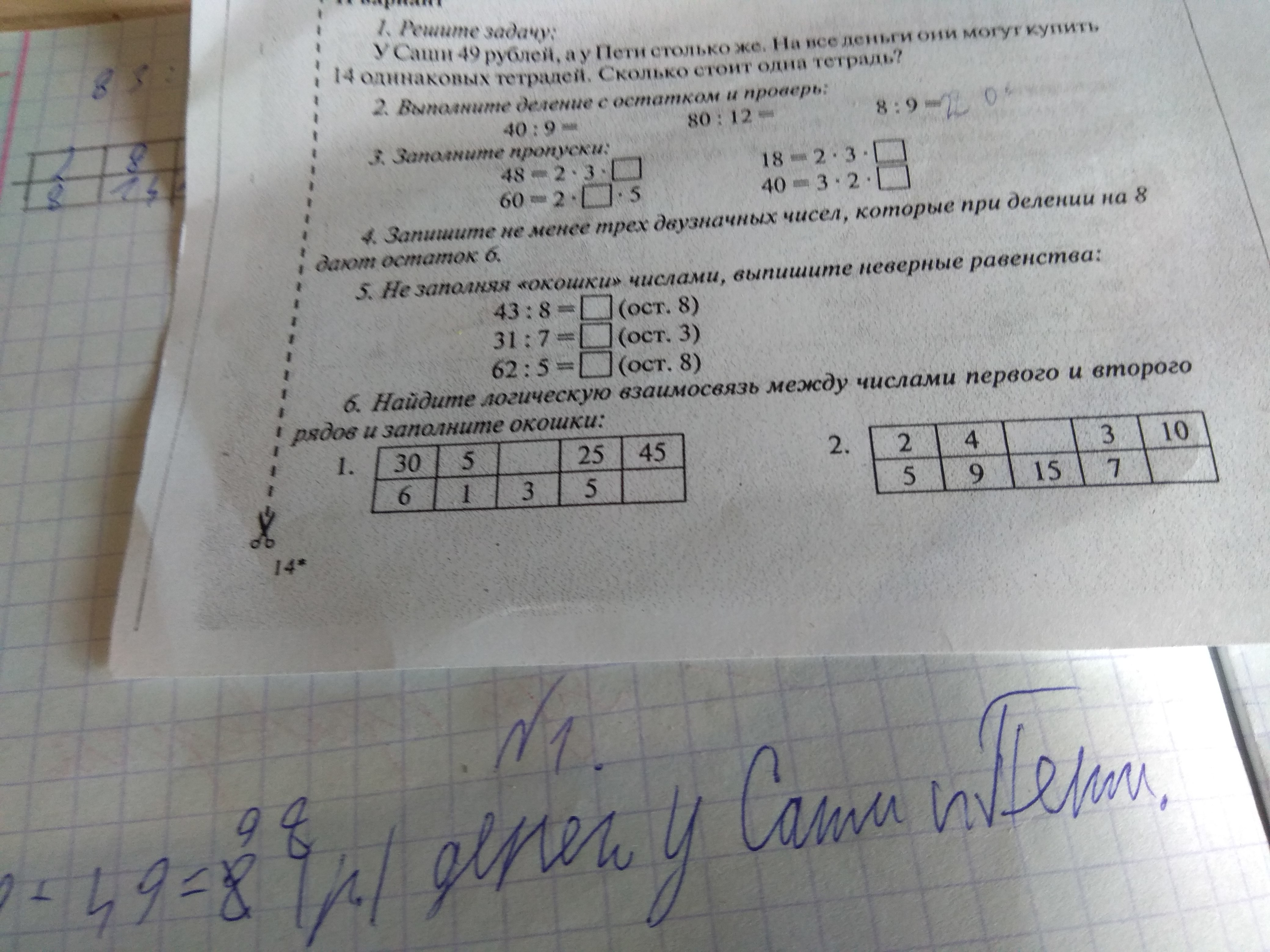 1. Закономерность заключается в том, что если поделить число первого ряда на стоящее под ним число то будет 5.