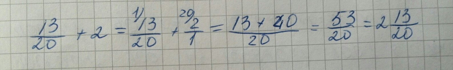 2 + 13/20 = 2 целых 13/20. Мне кажется, что первоначальный перевод целой части в неправильную дробь, сложение, а затем обратное действие (выделение целой части из неправильной дроби) лишено смысла. Решение не рациональное, извините. Исключительно личное мнение.