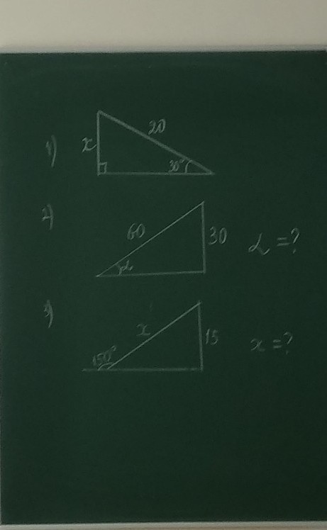 1) х=1/2гипотенузы=1/2*20=10. т.к. угол напротив 30°