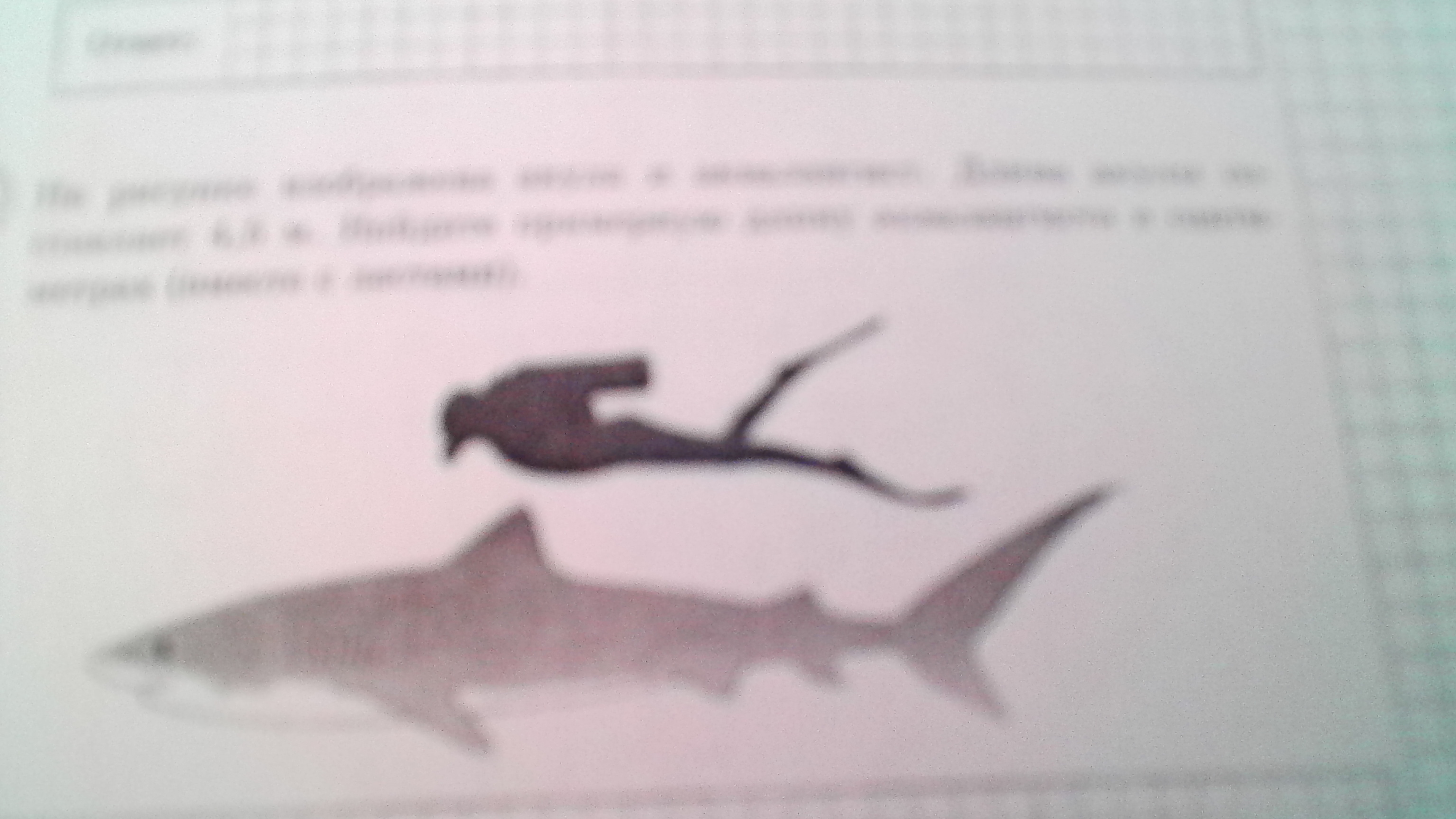 Помогите пожалуйста решить задачи на рисунке изображена акула и аквалангист длина акулы составляет 4,5 м найти примерную длину аквалангиста в см вместе с ластами спасибо