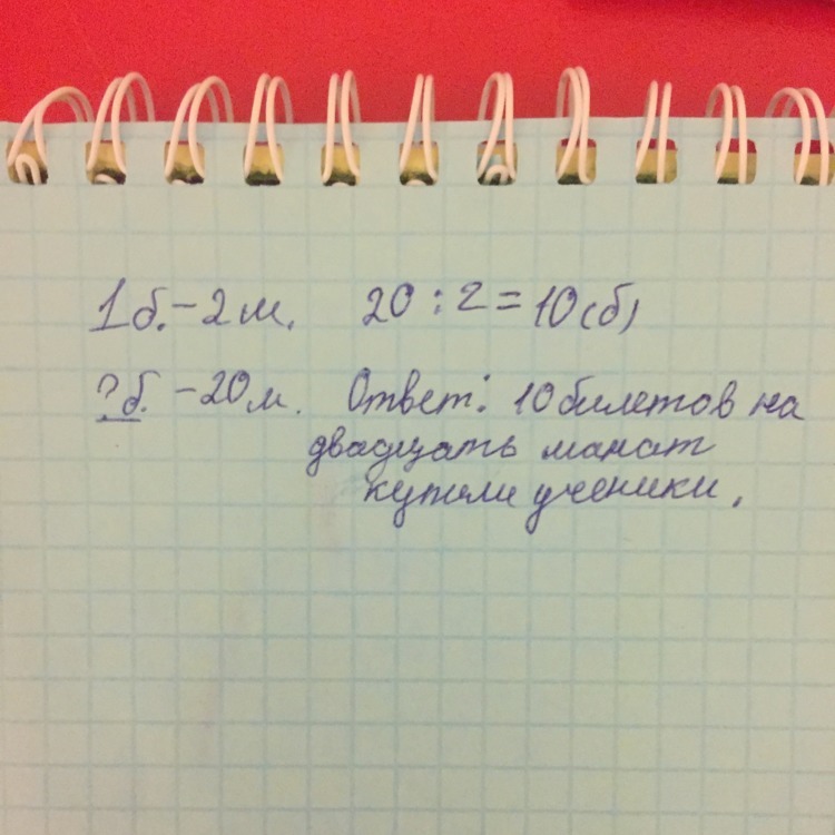 1 Цена билета в театр 2 маната. Ученики 2-го класса заплатили за билеты 20 манатов. Сколько билетов купили ученики?