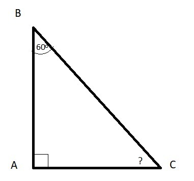 ∠С = 90° - ∠В ⇒ ∠С = 90° - 60° = 30°