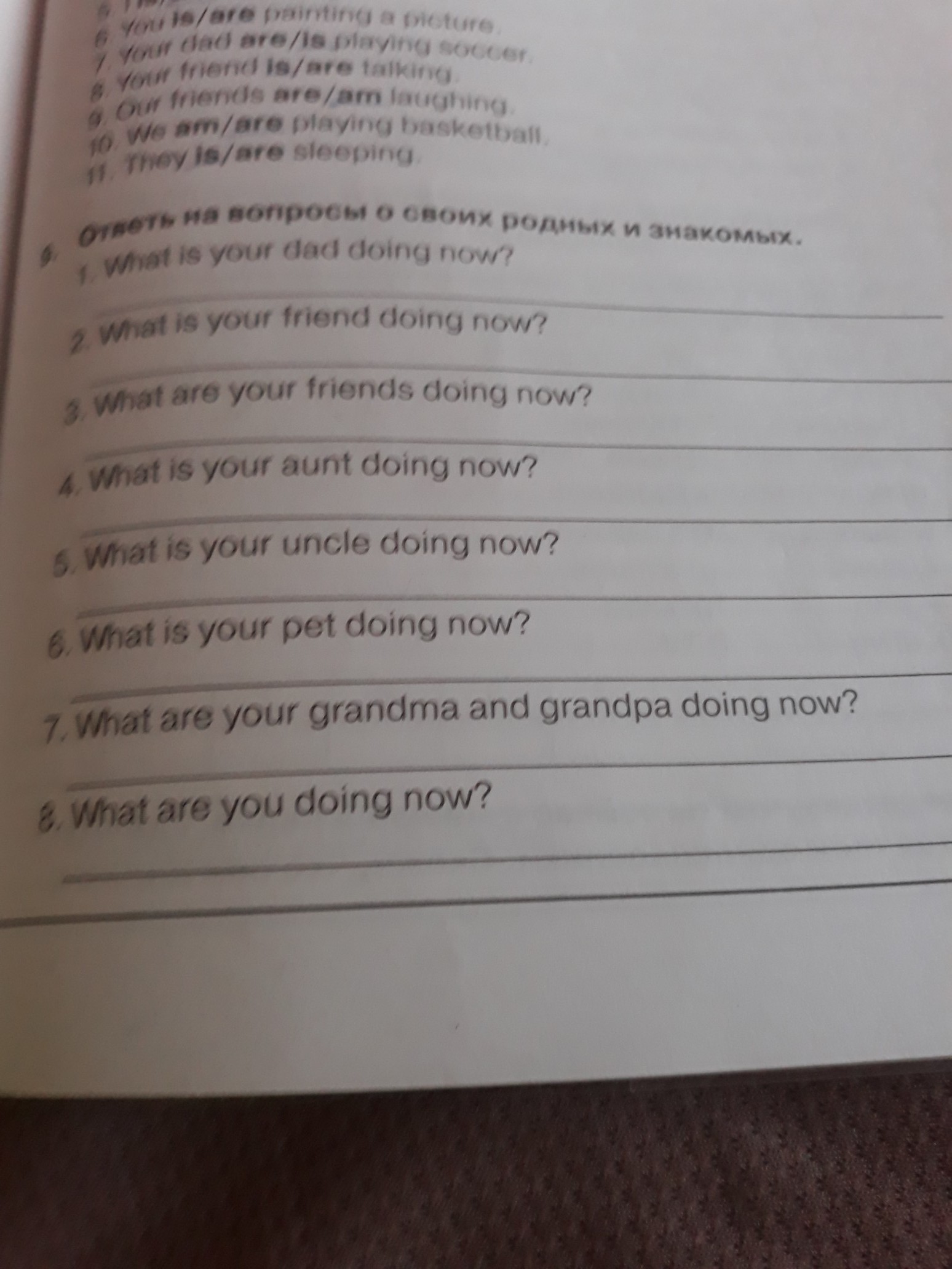 ты должна написать что делают твои папа, друг, друзья, тётя, дядя, питомец, дедушка и бабушка, ты делают сейчас.