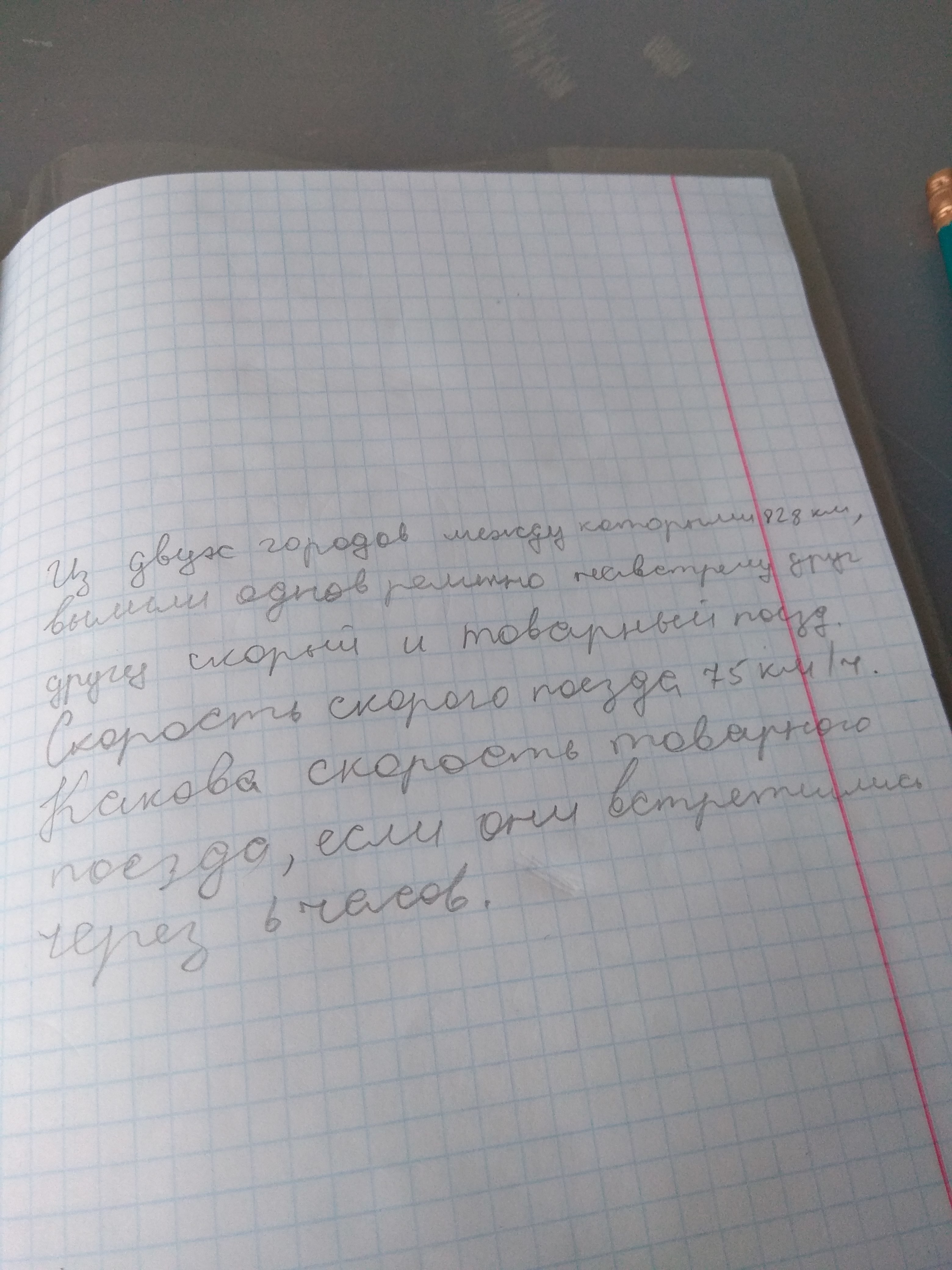 2)828- 450= 378(км) - проехал товарный