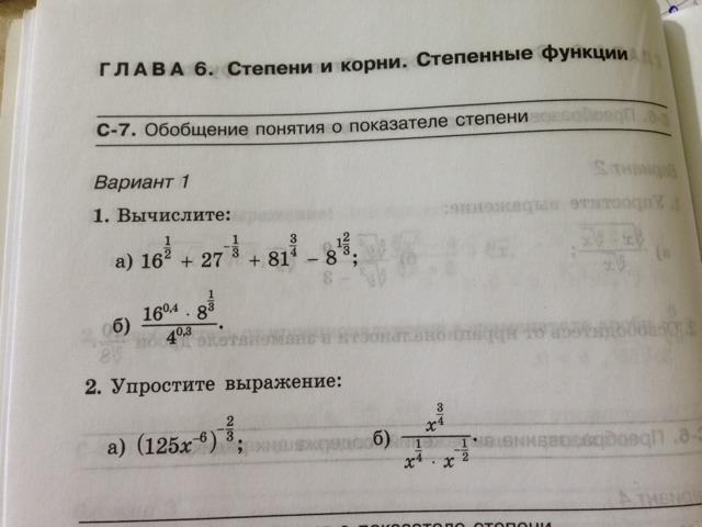 б) (2^4)^0,4*(2^3)^(1/3):(2^2)^0,3=2^1,6*2^1*2^(-0,6)=2^(1,6+1-0,6)-2^2=4