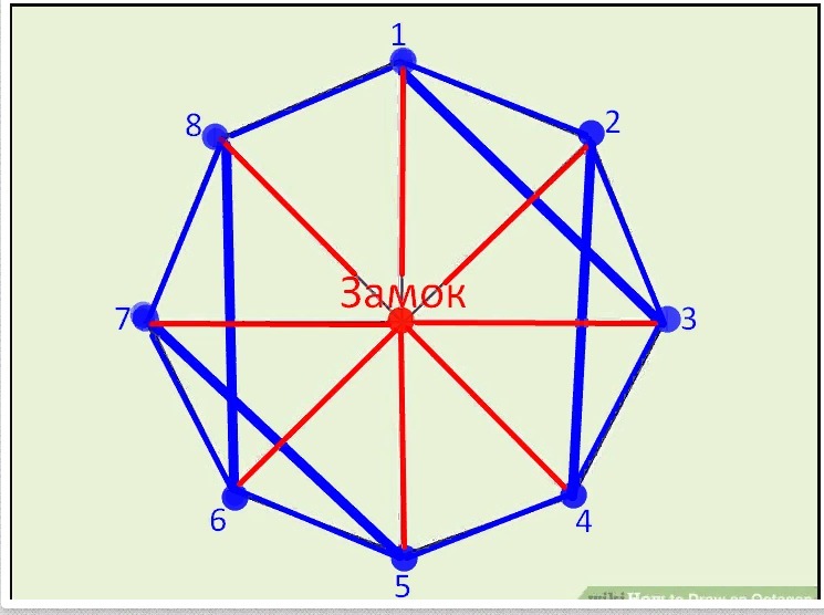 1)Замок соединен дорогами со восьмью деревнями,обозначим 8 дорог.