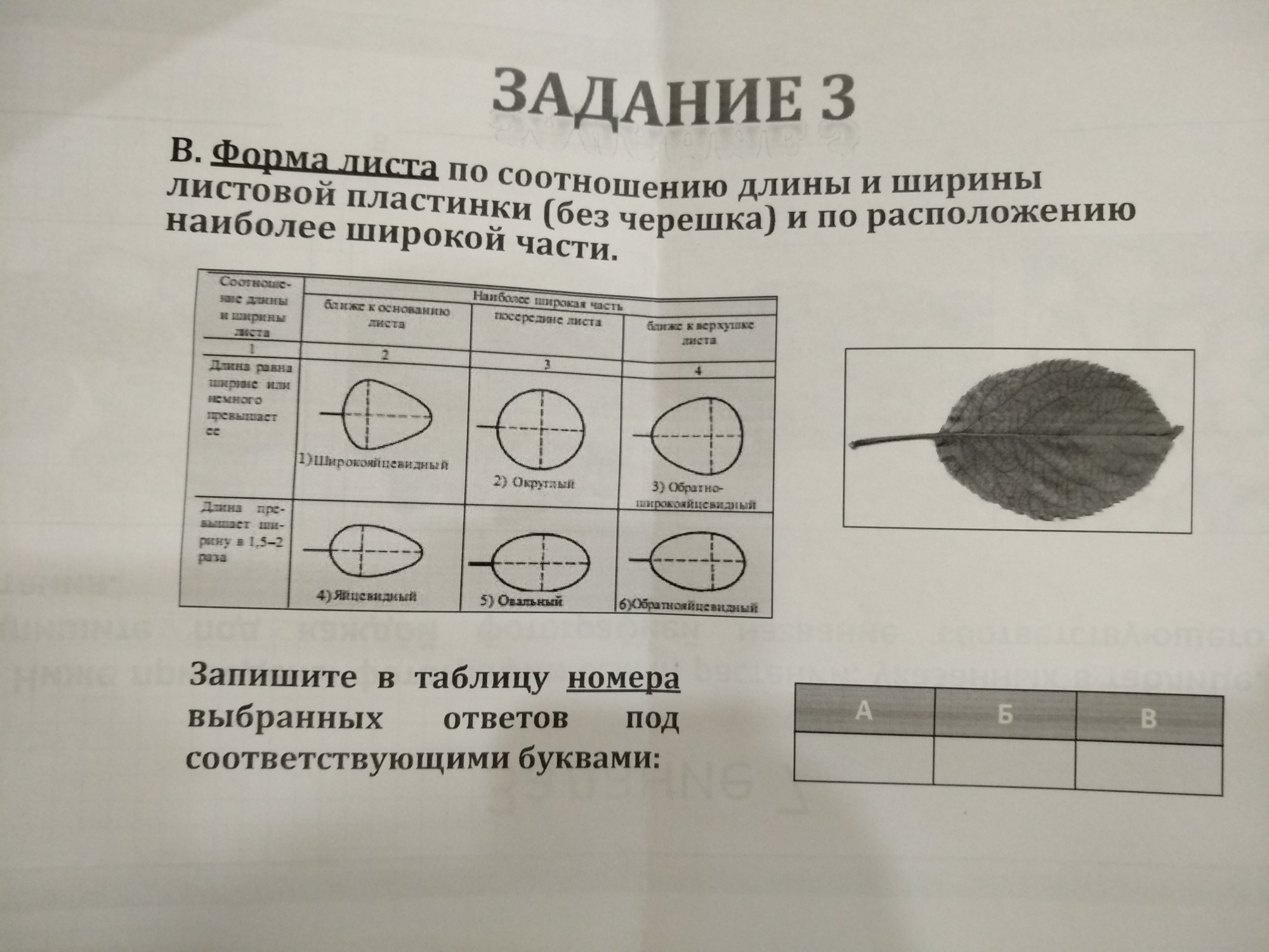 наиболее широкая часть посередине листа