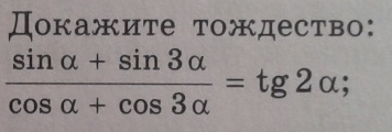 при делении 2 и cosA сокращаются остается sin2A/cos2A=tg2A