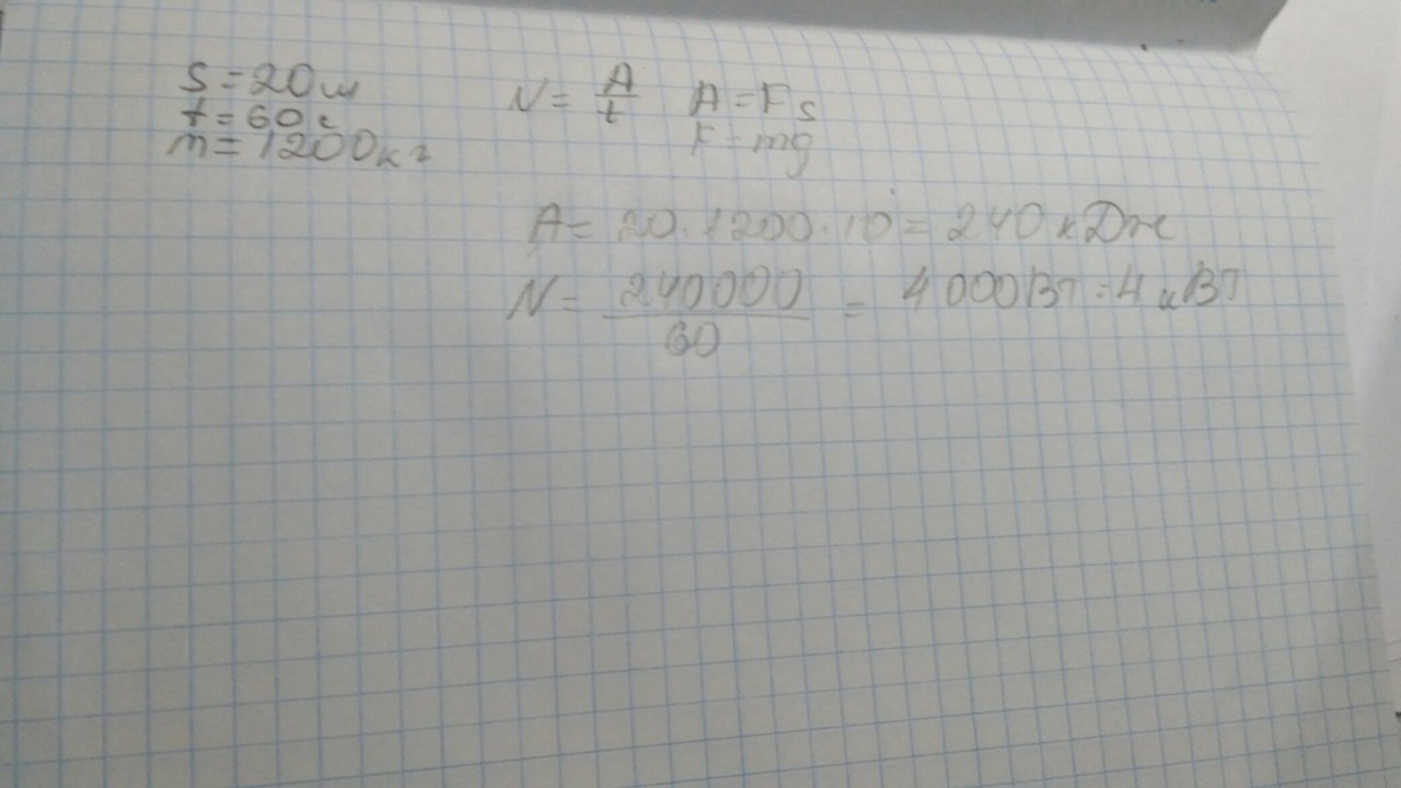 Кран поднимает балку массой 1,2 т на высоту 20 м за 1 мин. Какую работу он совершает,и какая мощность развивается при этом. Просьба, напишите подробно)))