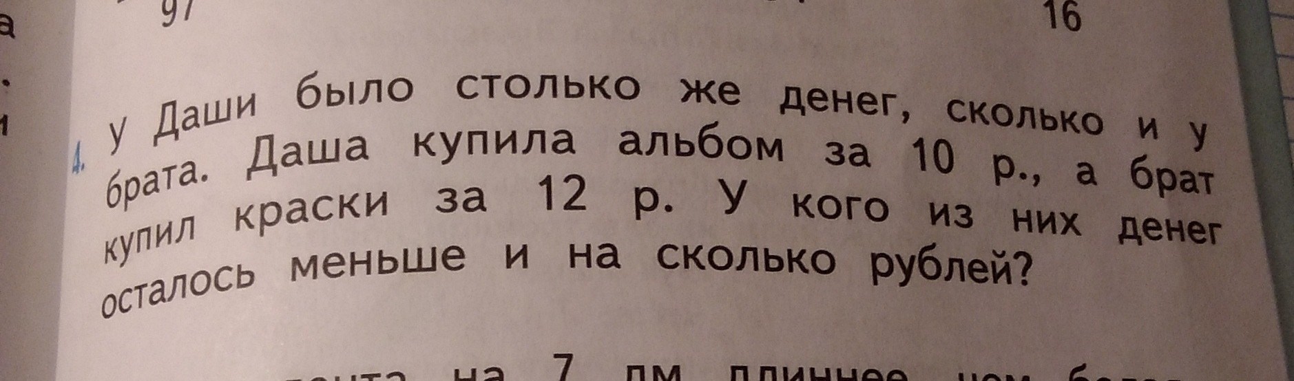 У брата, на 2 рубля, потому что брат потратил больше на два публя, чем Даша