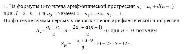 1.Найдите сумму десяти первых членов арифметической прогрессии (an), если, а3=5 а разность d=3.