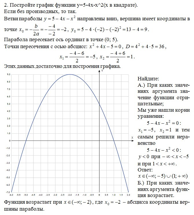 2. Постройте график функции y=5-4x-x^2(х в квадрате). Найдите: