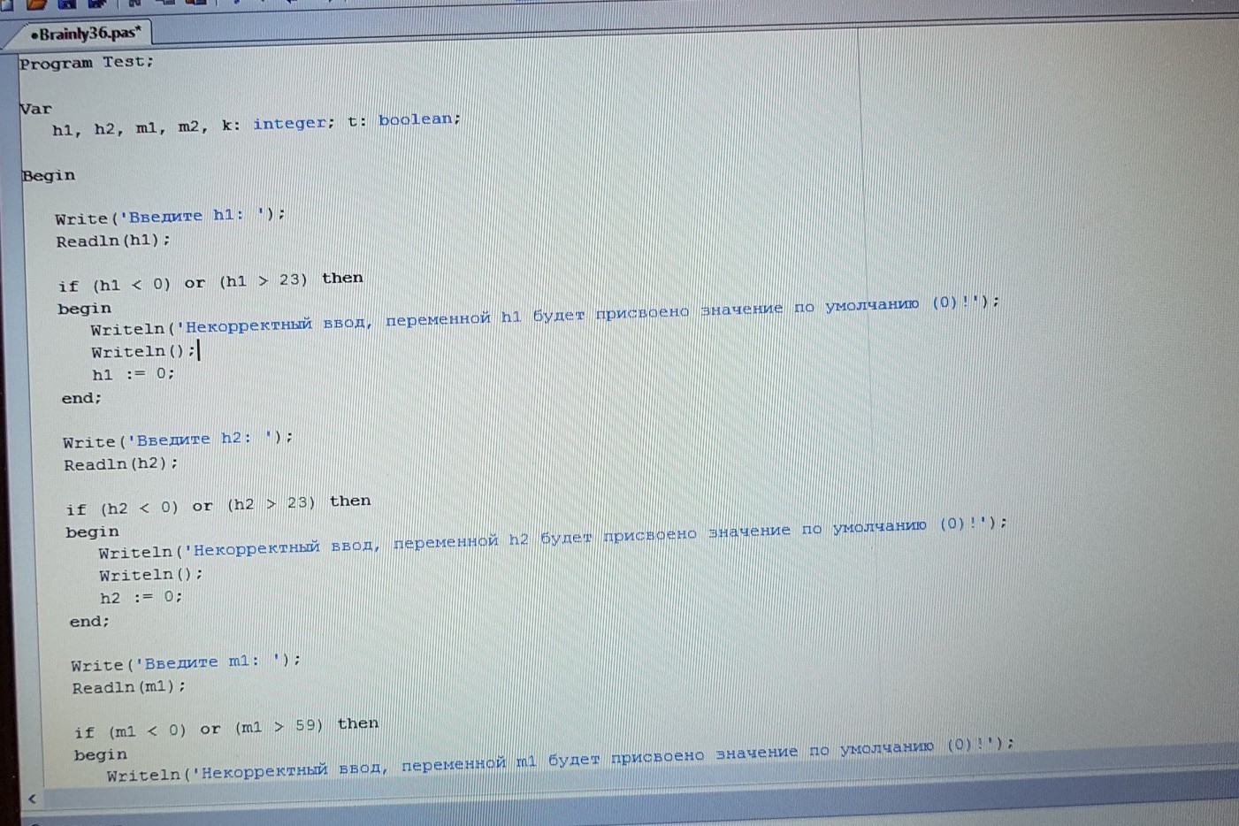 Writeln('Некорректный ввод, переменной h1 будет присвоено значение по умолчанию (0)!');