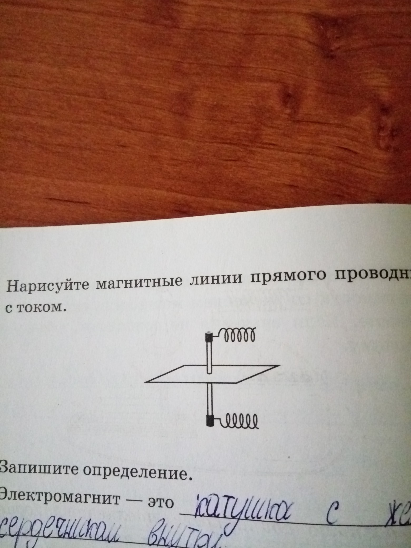 Нарисуйте магнитные линии прямого проводника с током.