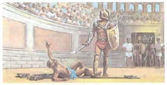 На рисунке изображен гладиаторский бой
