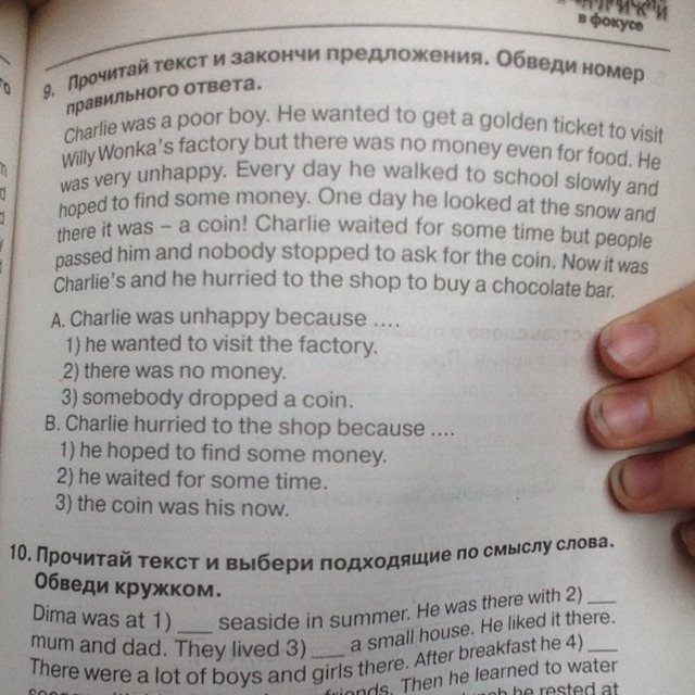 Прочитай текст и закончи предложение. Обведи номер правильного отверну . (Переводить не надо. 4 класс )