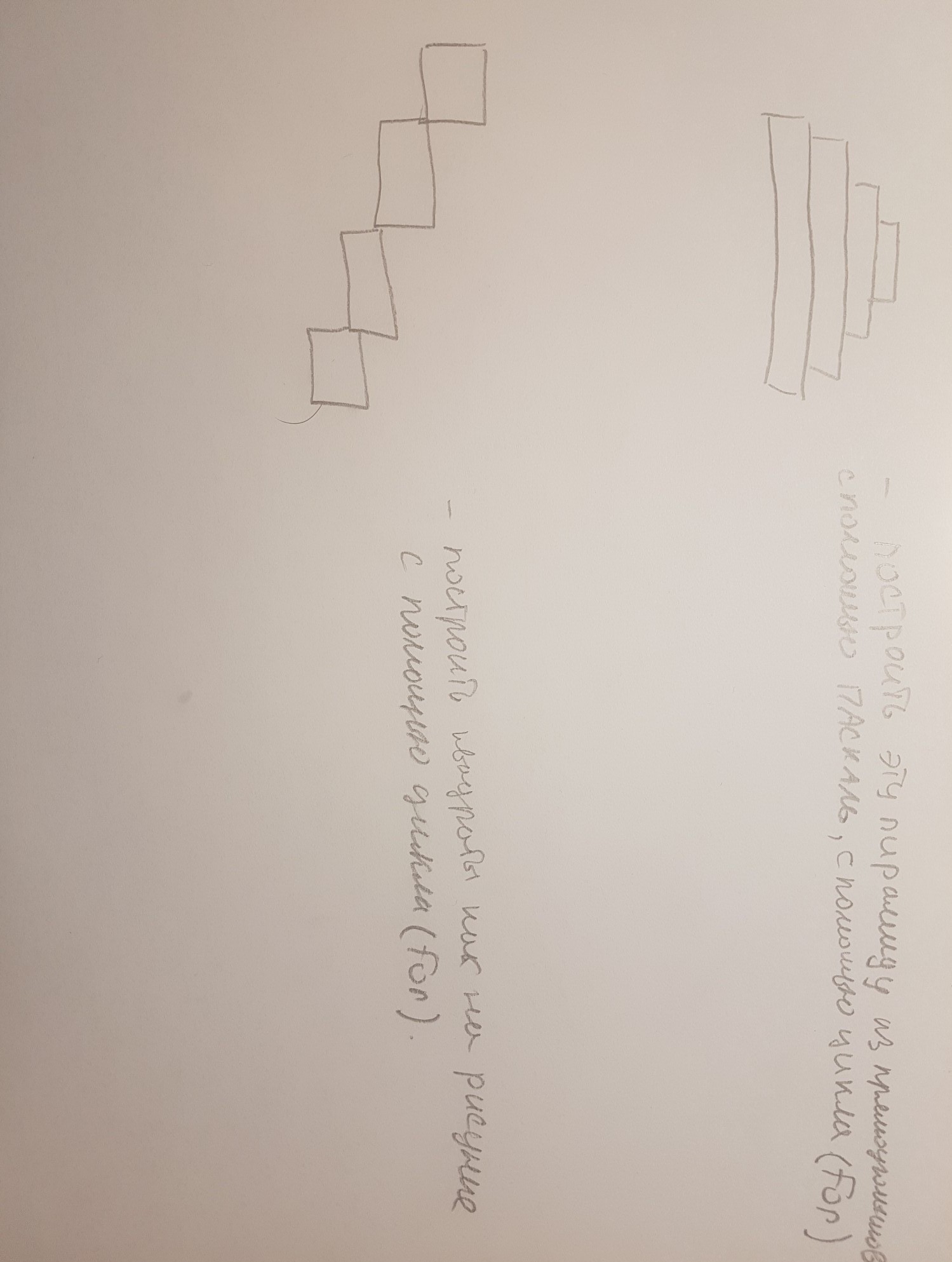 помогите!! Паскаль! построить пирамиду из прямоугольников с помощью цикла for