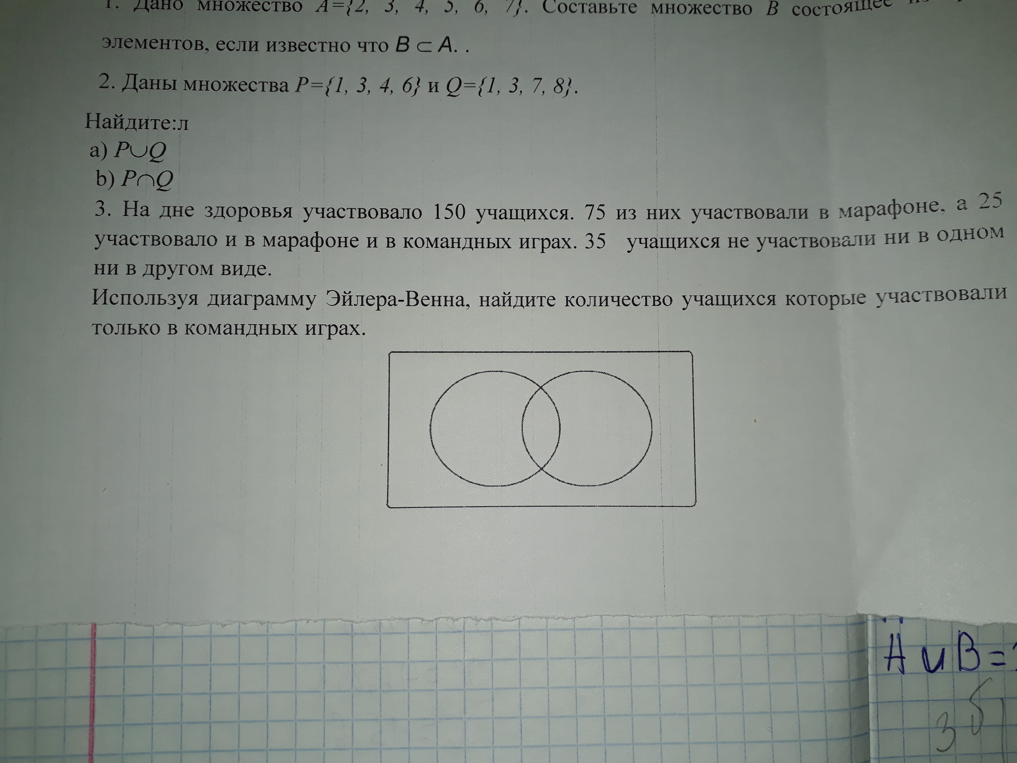 Помогите пожалуйста дам 10баллов задача С диаграммой Эйлера Ванна
