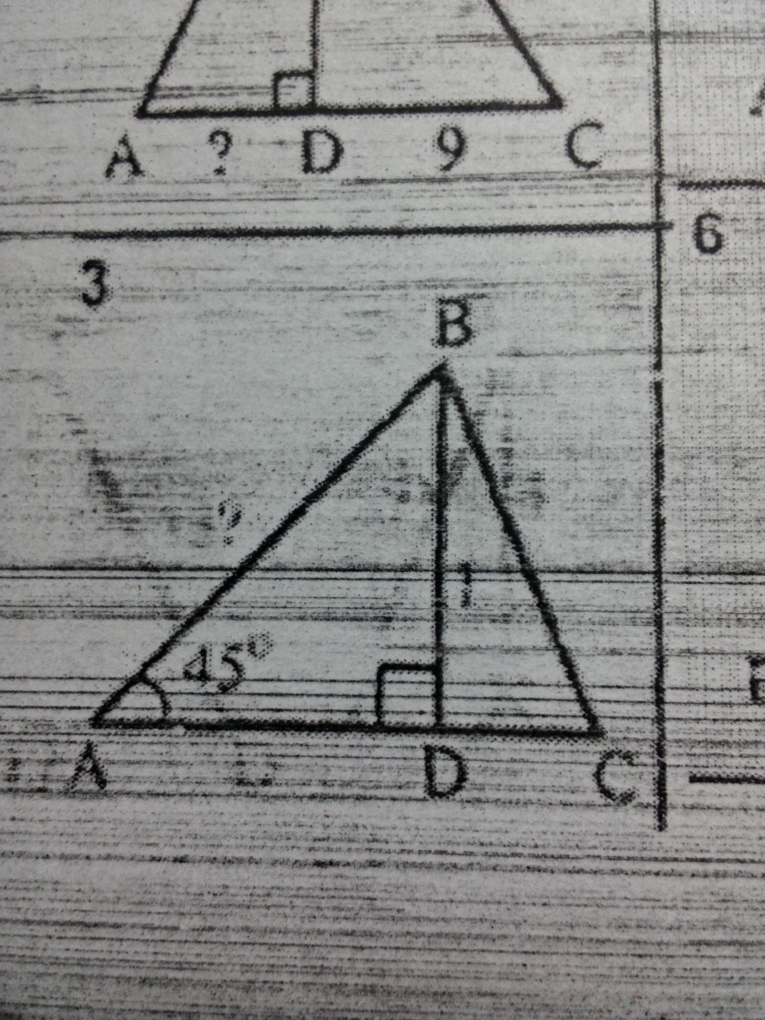 3) по сумме углов угол абд=45, значит ад=1, по теореме пифагора ав=√2