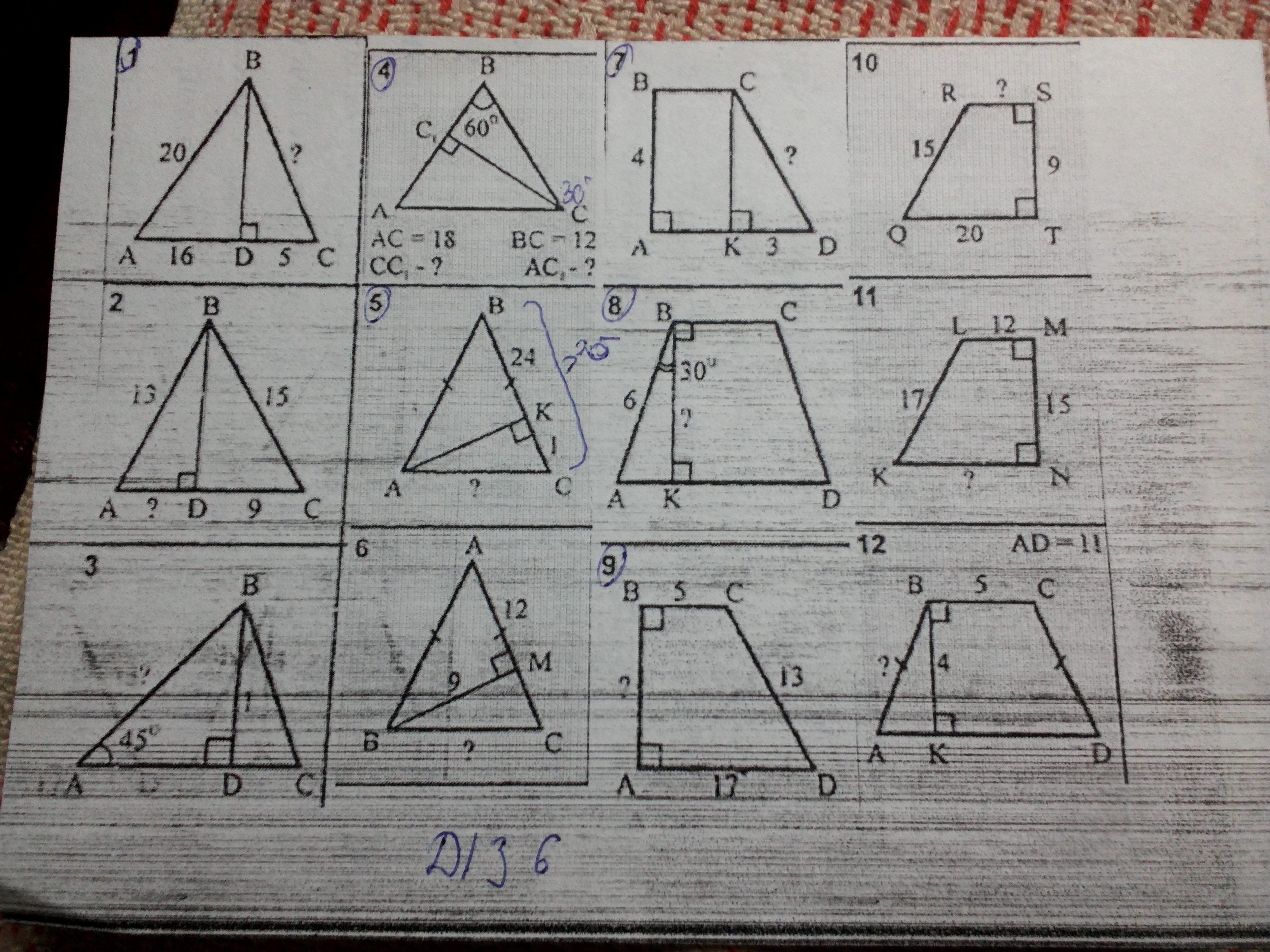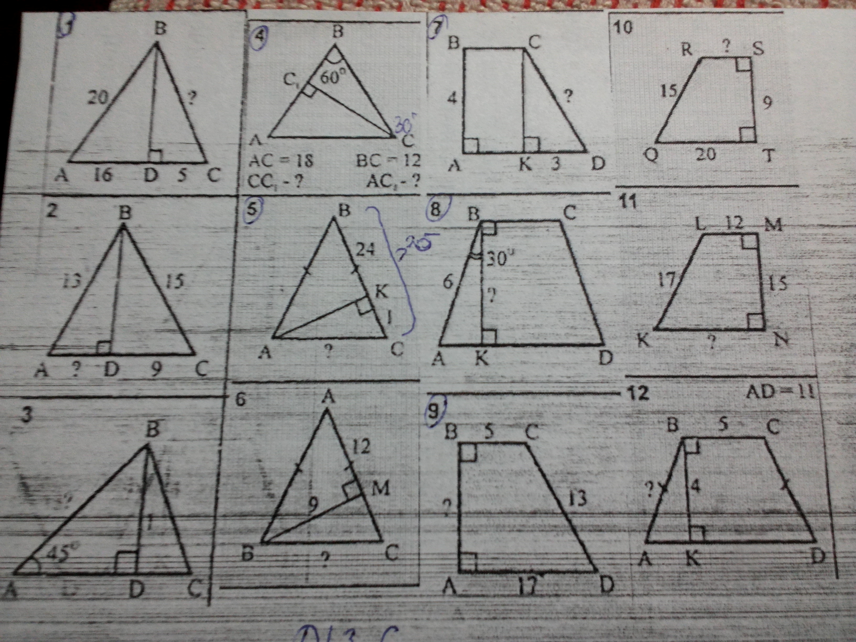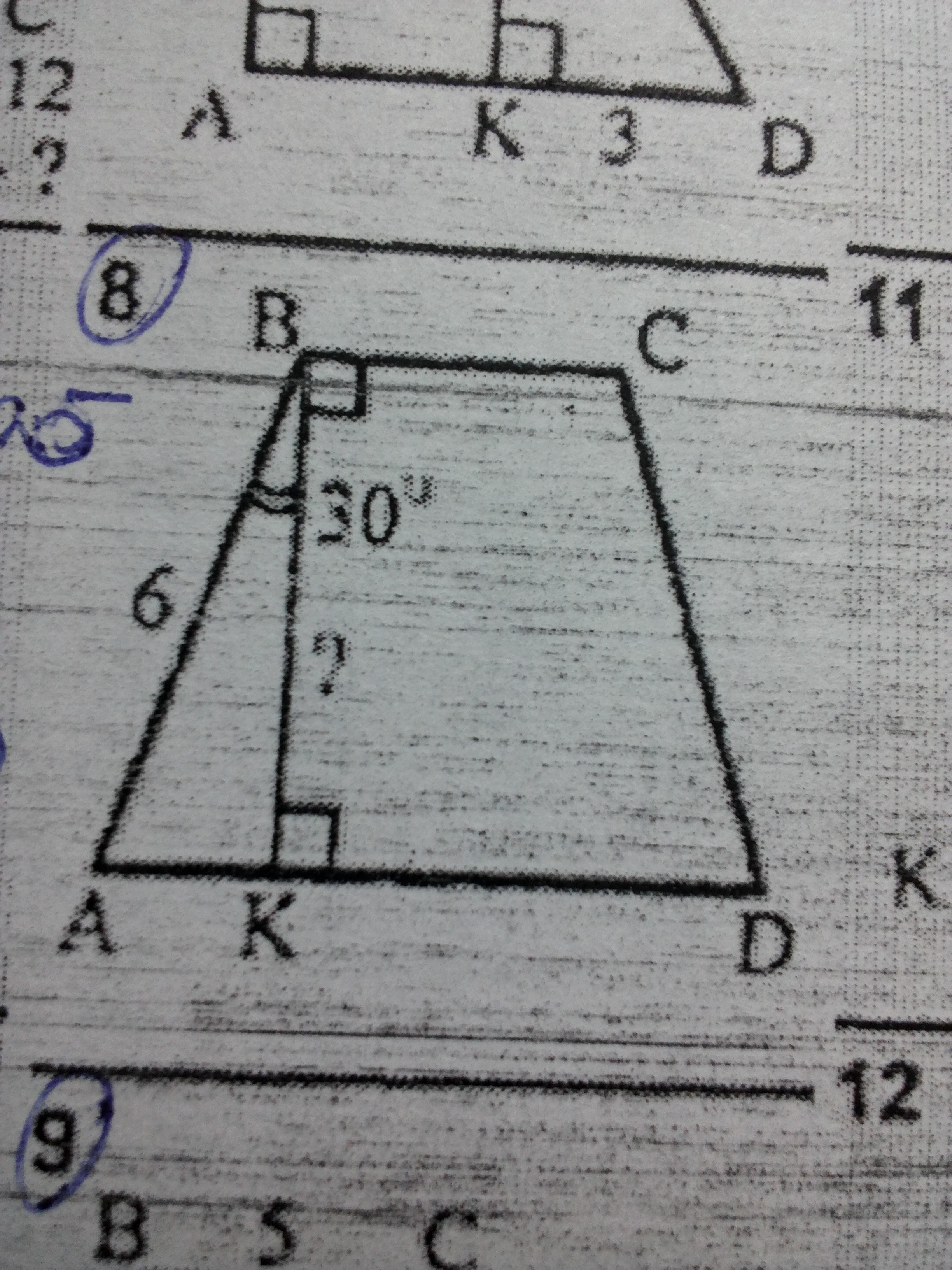 8)катет против 30=половине гипотенузы=3, по пифагору из абк находим бк=√27