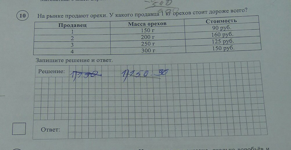 Ответ: самые дорогие орехи у второго продавца.