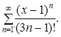 sum limits _{n=1}^{infty }frac{(x-1)^{n}}{(3n-1)!}\\limlimits _{n to infty}frac{|a_{n+1}|}{|a_{n}|}=limlimits _{n to infty}frac{|x-1|^{n+1}}{(3n+2)!}cdot frac{(3n-1)!}{|x-1|^{n}}= limlimits _{n to infty}frac{|x-1|}{3ncdot (3n+1)cdot (3n+2)}=\\=|x-1|cdot 0=0 textless  1; ; to ; ; ; sxoditsya; pri; ; xin (-infty +infty )