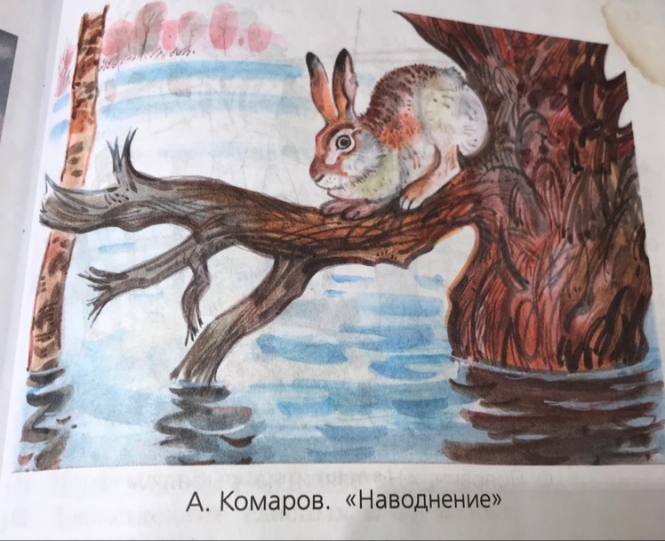На картине А. Н. Комарова «Наводнение» — ранняя весна. Однако это время года приносит лесным зверушкам не только радость теплых солнечных дней, но и неприятности, и даже настоящую беду.