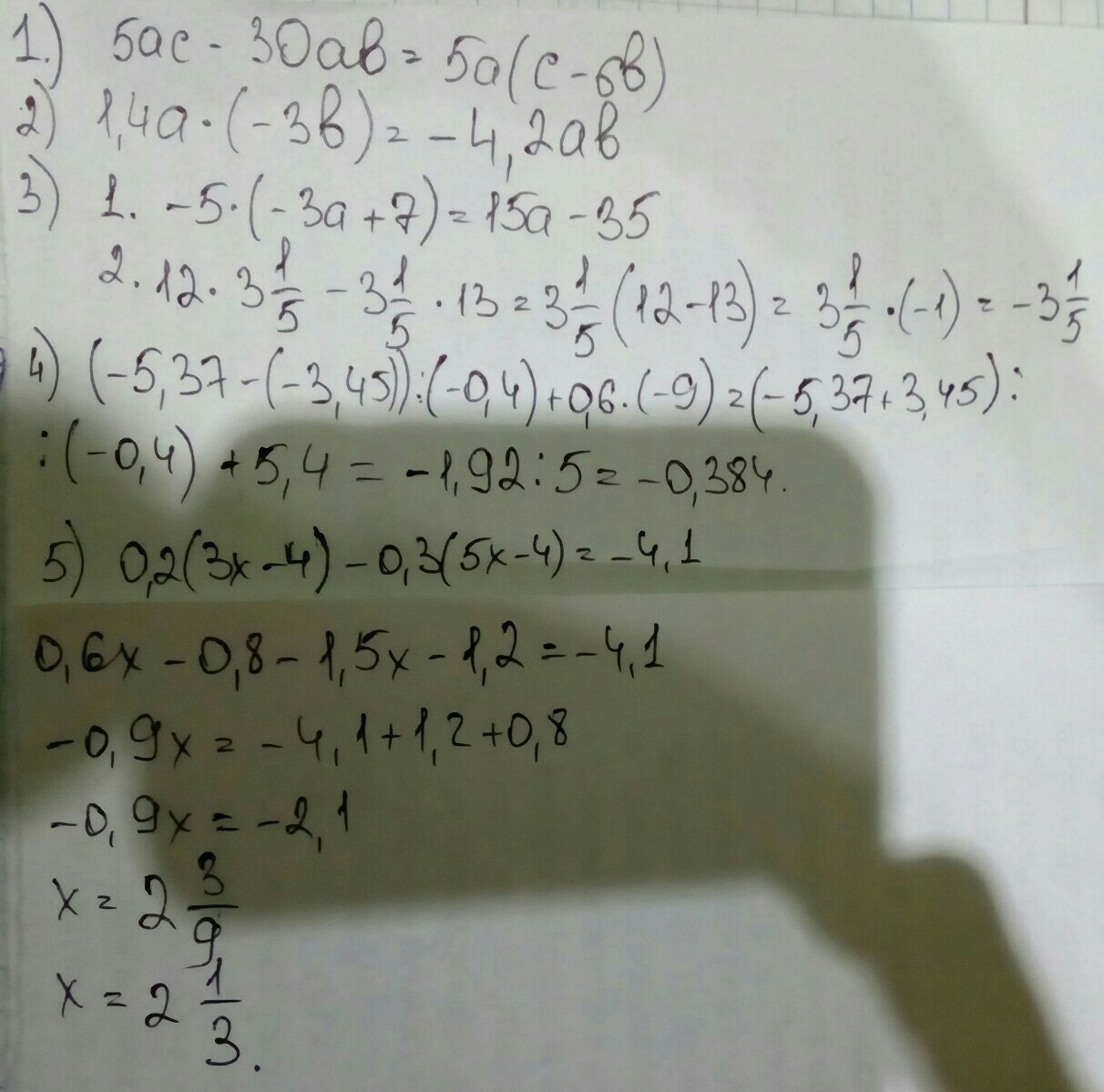 5- (-5,37 + 3,45)÷(-0,4) - 5,4= -1,92÷(-0,4) - 5,4=4,8-5,4= -0,6