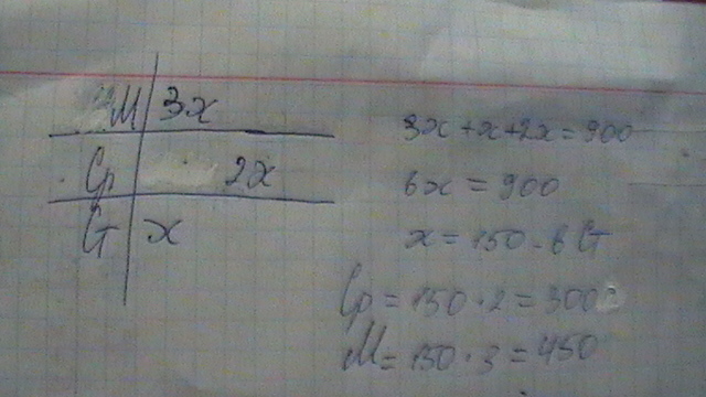 В школе 900учеников.Сколько учащихся в начальных,средних и старших классах,если в начальных классах их в 3раза больше ,чем в старших и в 2 раза меньше чем в средних?
