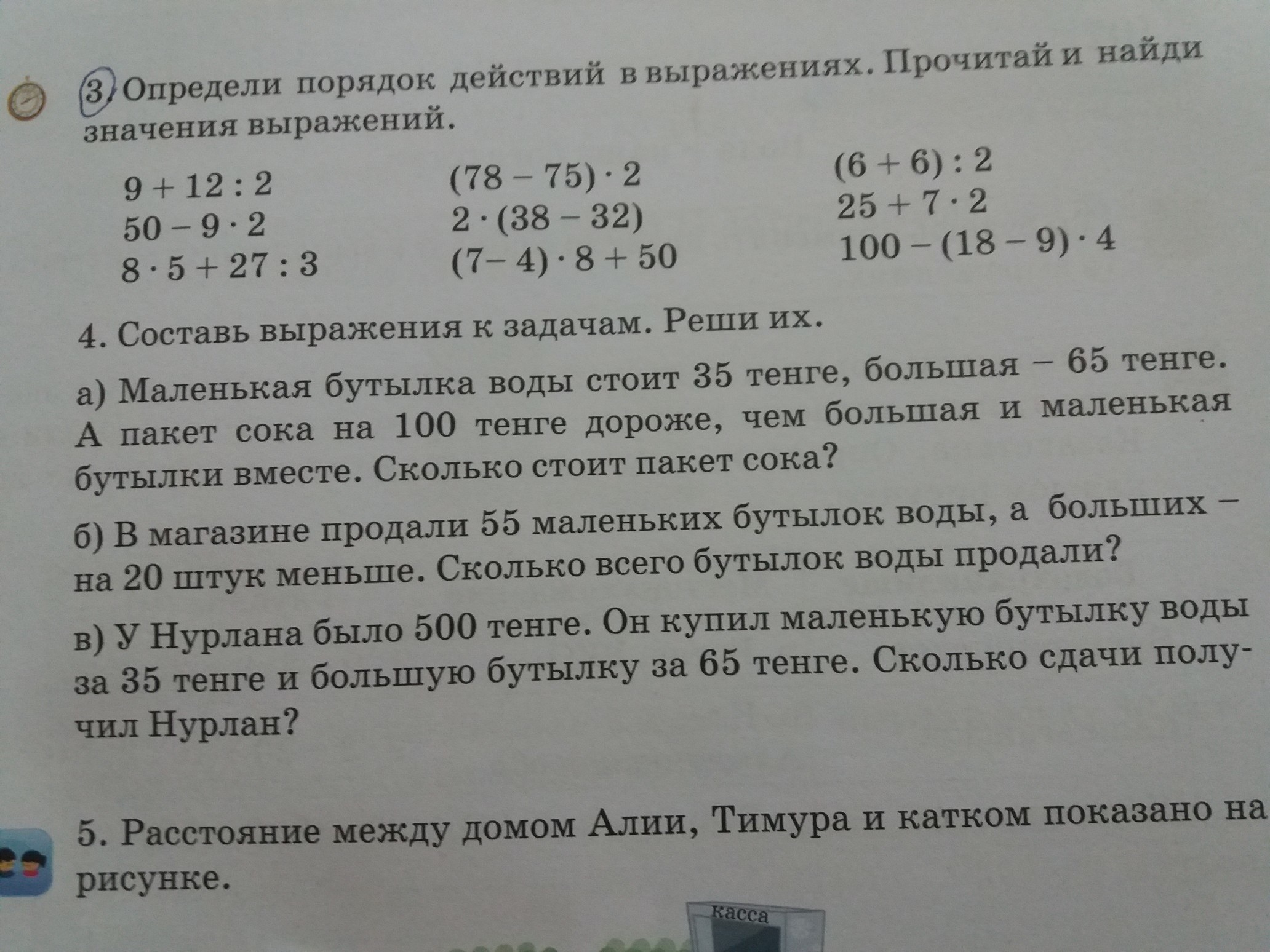 б)В магазине продали 55 маленьких бутылок воды а больших на 20 штук менше.Сколько всего бутылок воды продали?в)У Нурлана было 500 тенге. Он купил маленькую бутылку воды за 35 тенге и большую бутылку за 65 тенге . Сколько сдачи получил Нурлан?