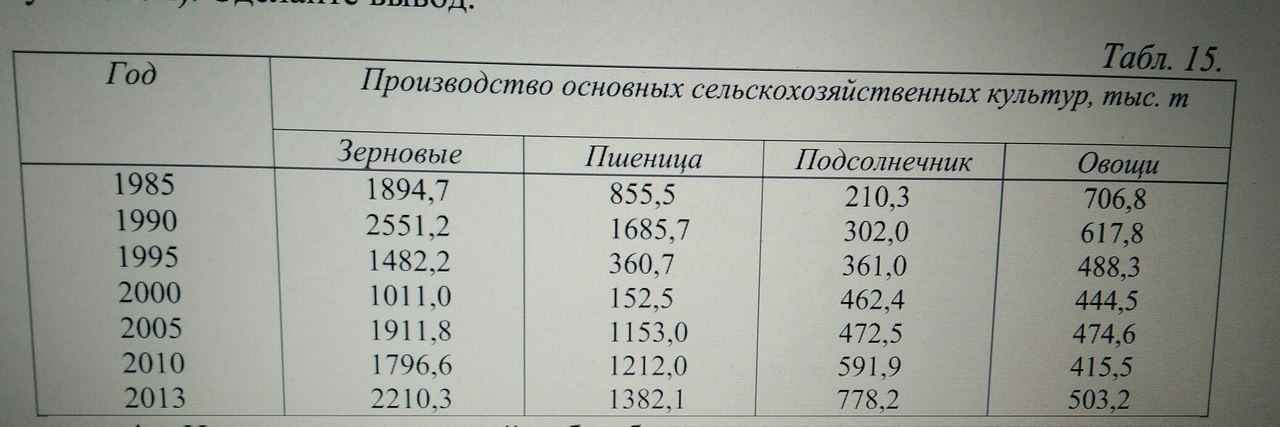 ОЧЕНЬ СРОЧНО! ПОЖАЛУЙСТА Помогите составить столбчатую диаграмму "Анализ статистических данных о сельскохозяйственной продукции" по таблице 15. Столбик "Год" и "Овощи" ПРОШУ ПОМОГИТЕ