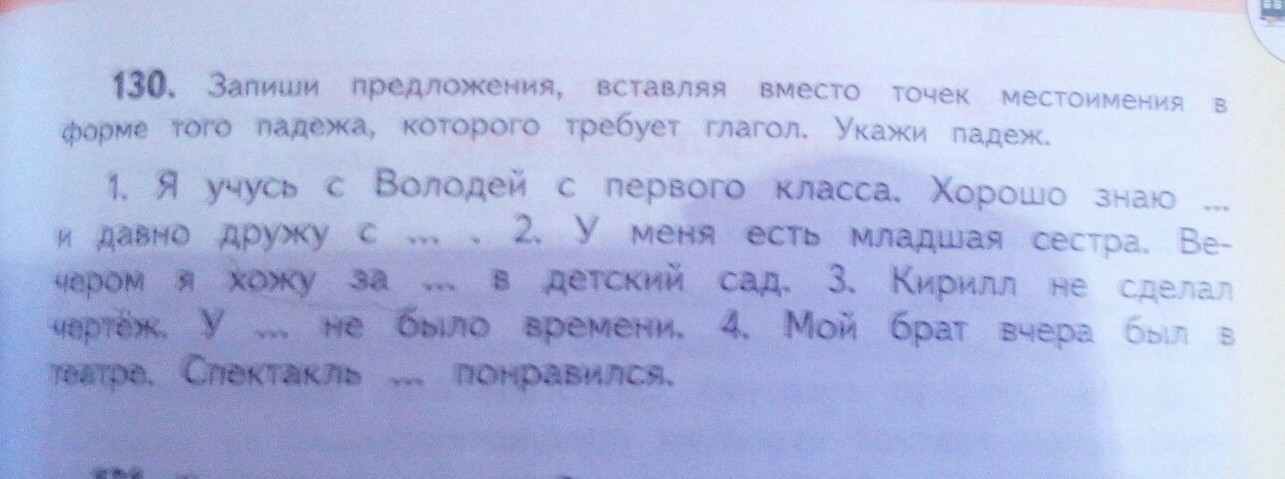 1)его; 2)ним; 3)ней; 4)меня; 5)ему.