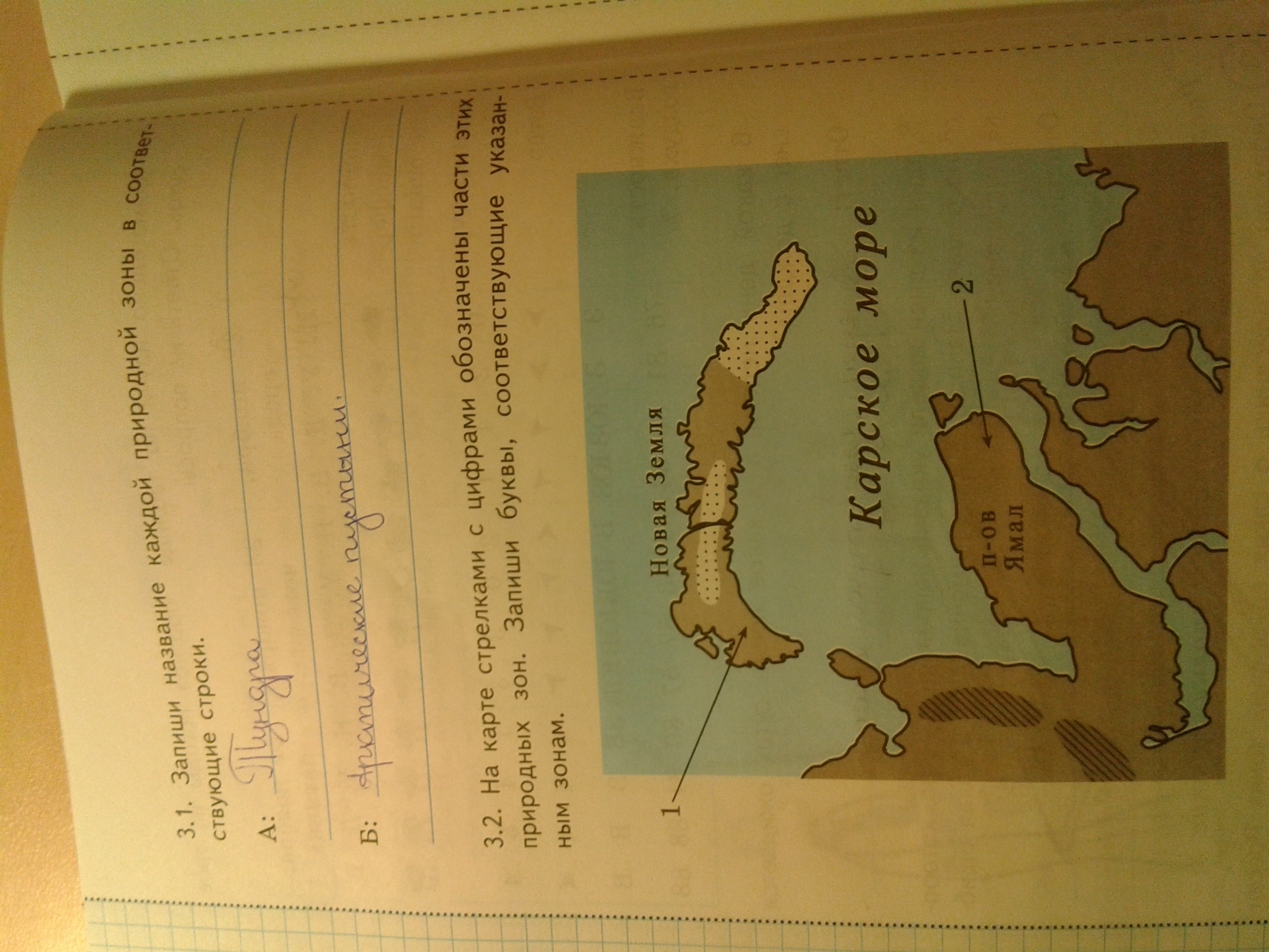 Извините, но вы неправильно решили. Задача состоит в том, что надо посмотреть какие ПРИРОДНЫЕ ЗОНЫ ( тундра или арктические пустыни ) под номером 1 и 2