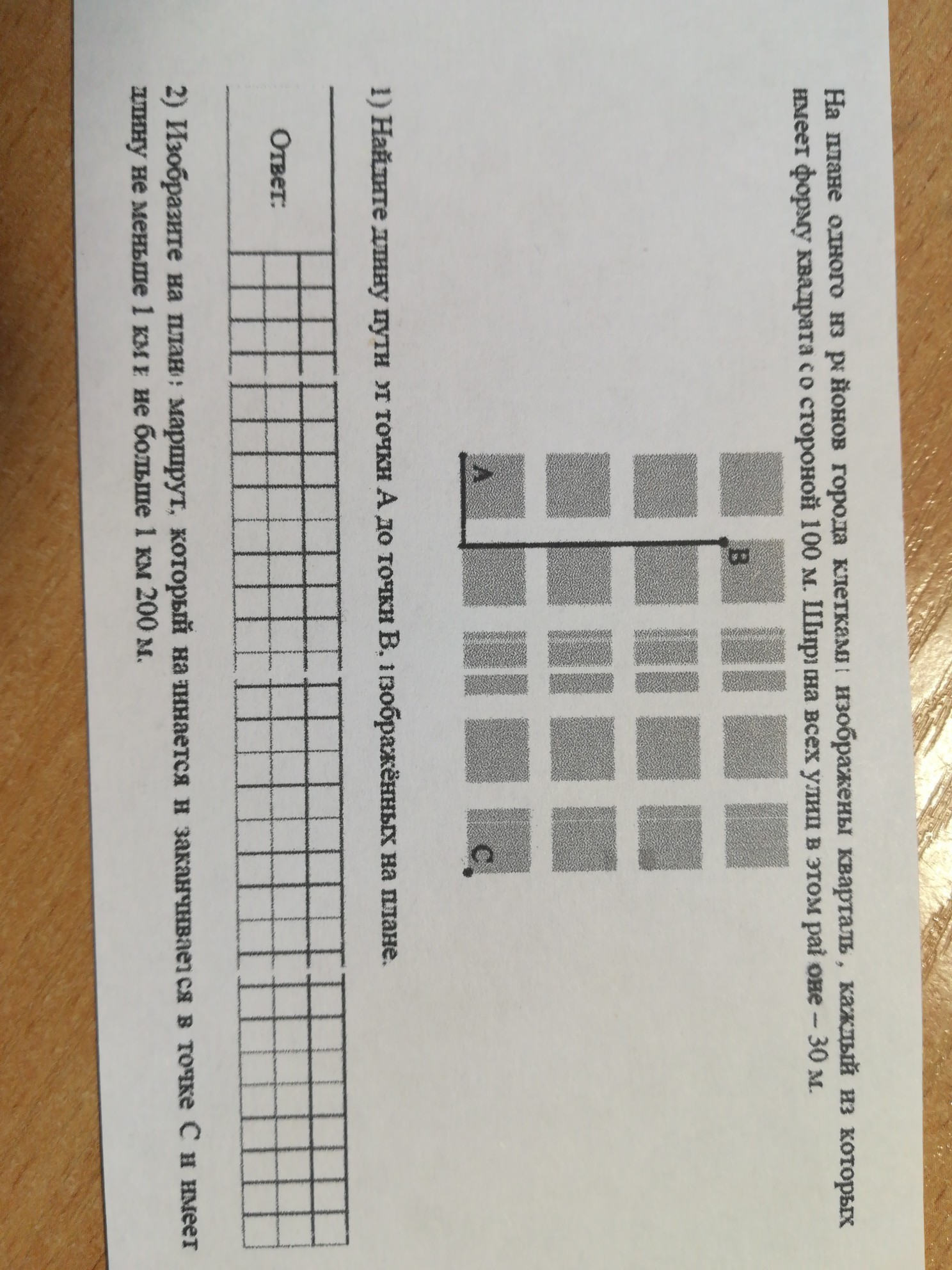 1)Если сторона 1ой клетки = 100м, а ширина улиц = 30м. Тогда надо