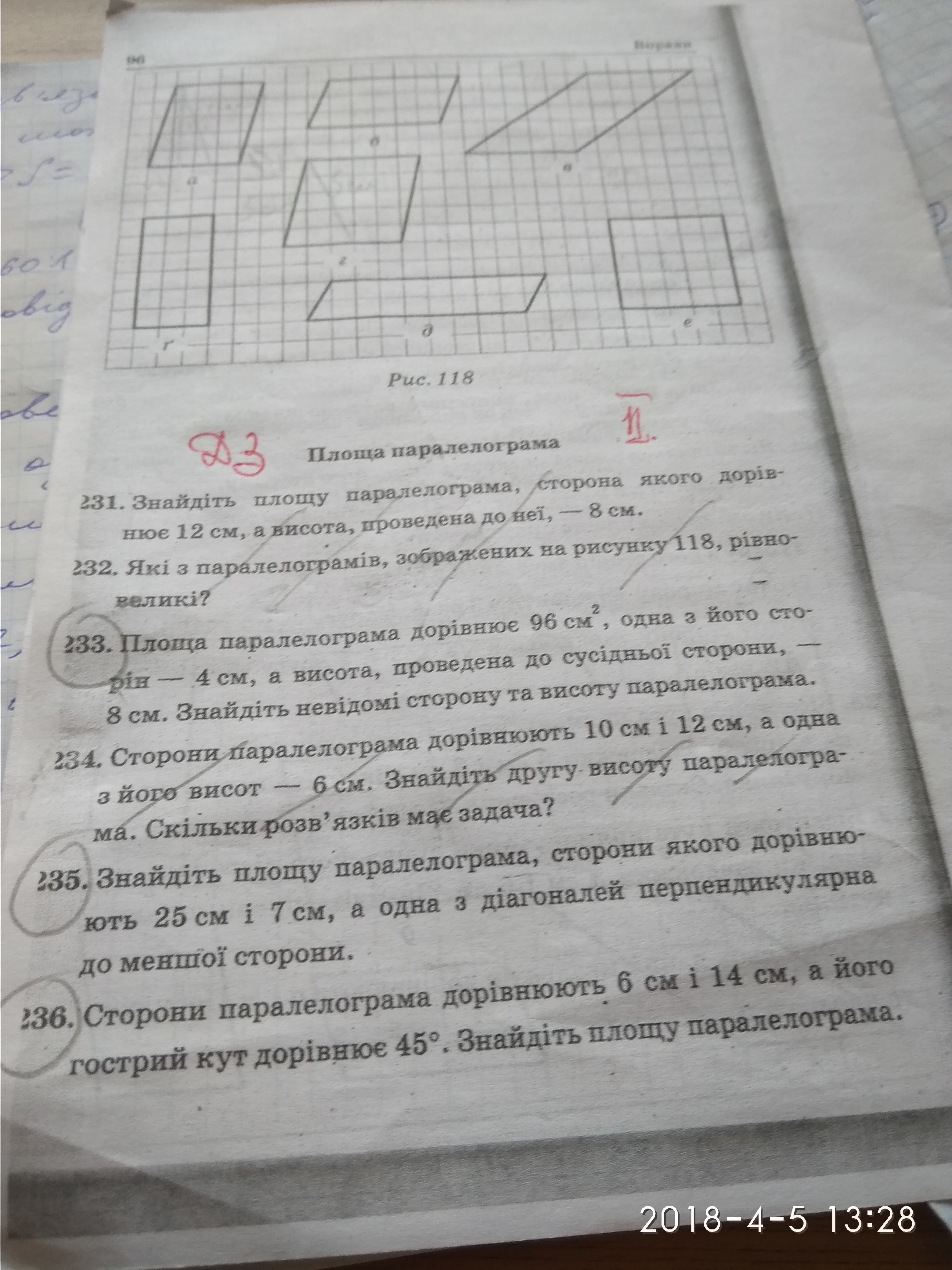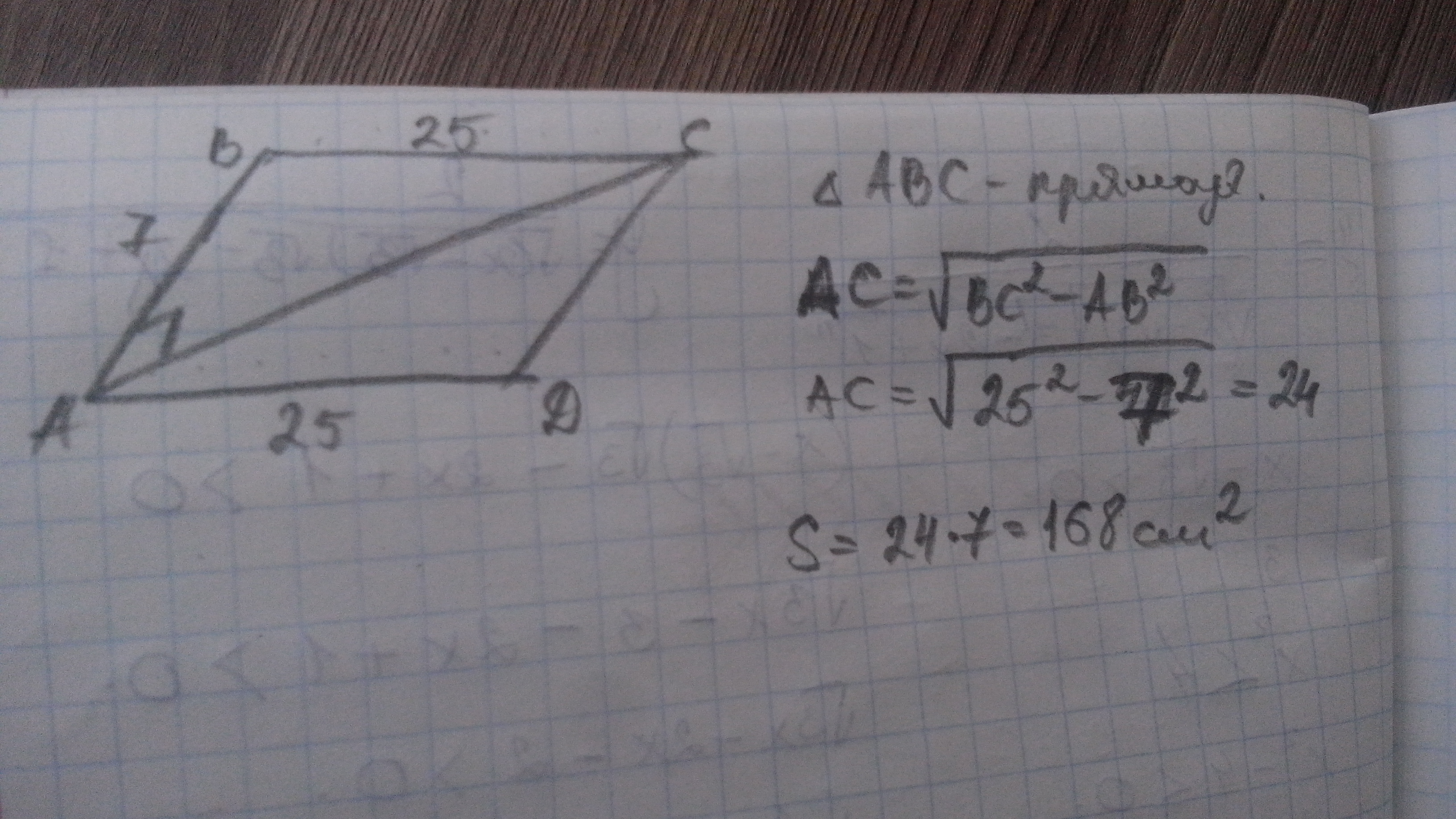 235. Диоганаль будет высотой, а треугольник образованный двумя сторонами и диоганалью - прямоугольный. Найдем диоганаль (катет):