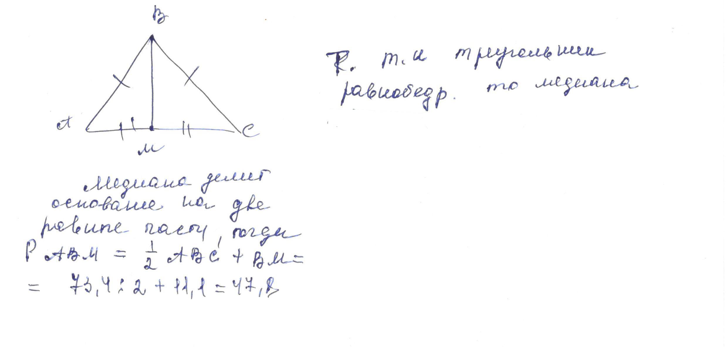Найдите периметр треугольника ABM, если медиана AM равена 11,1 см,