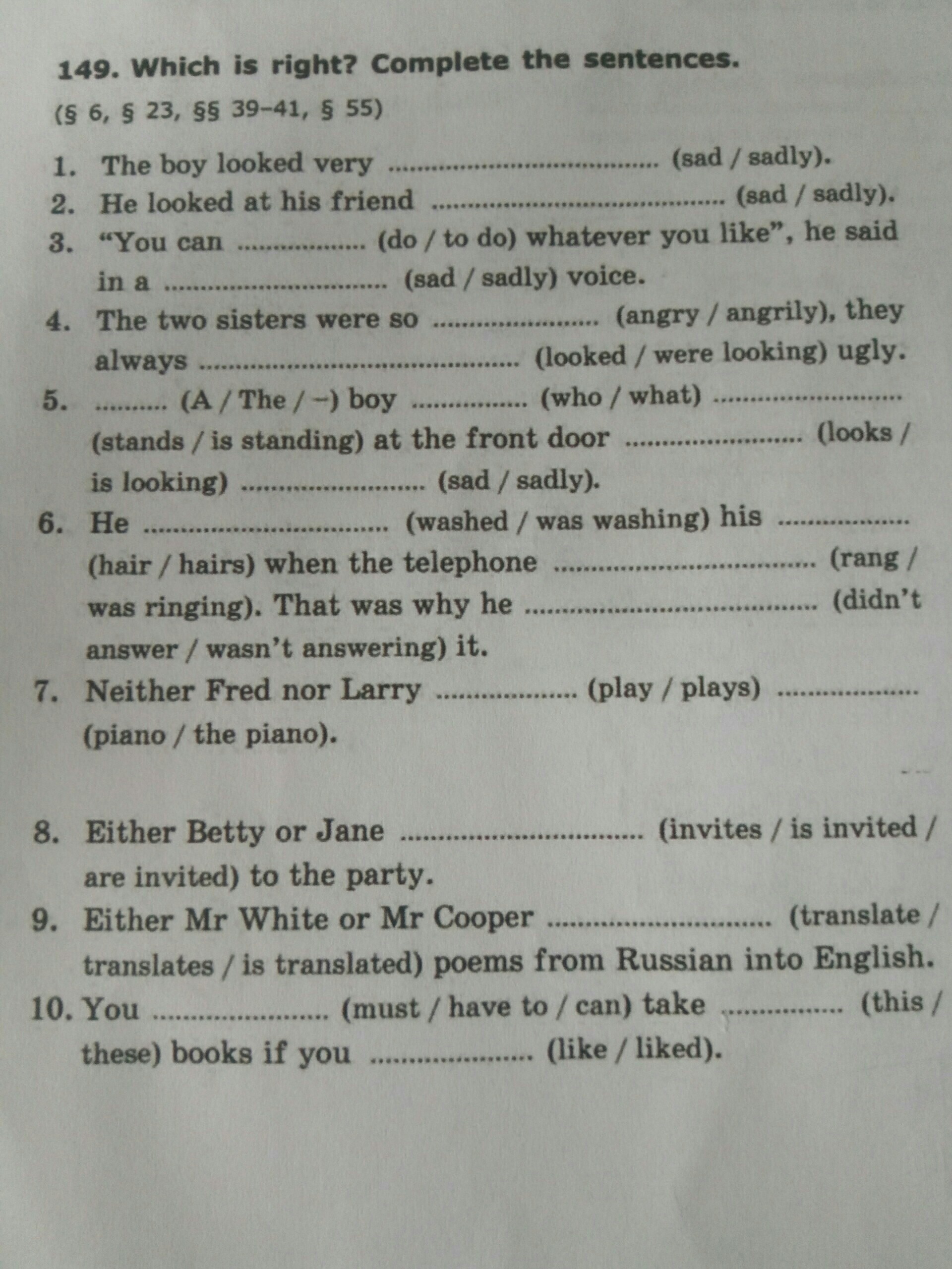 6)washed,hairs,rang,didn't answer