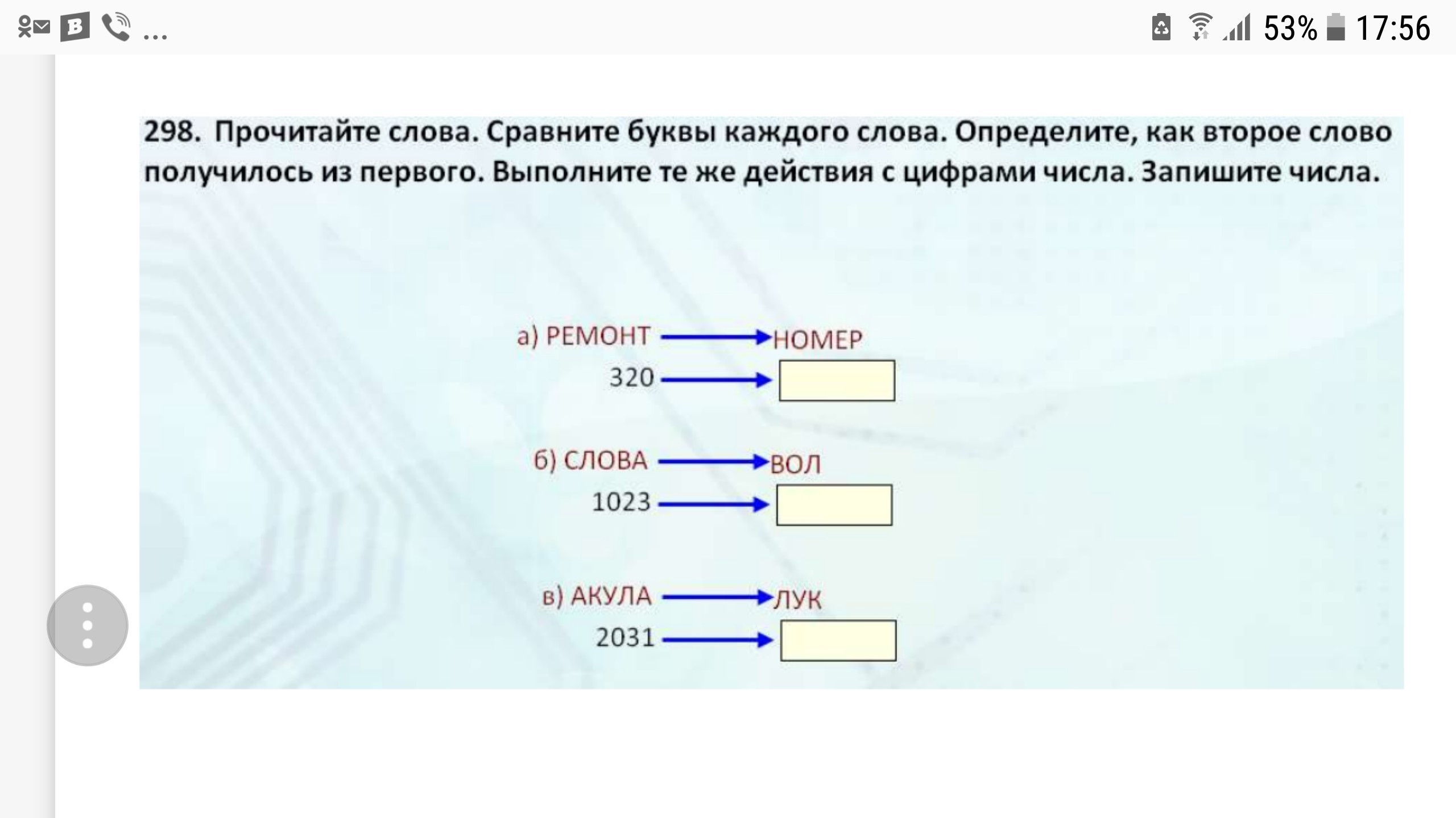 Помогите пожалуйста! определите как второе слово получилось из первого.выполните те же действия с цифрами числа.ремонт-номер 320-,слова-вол1023