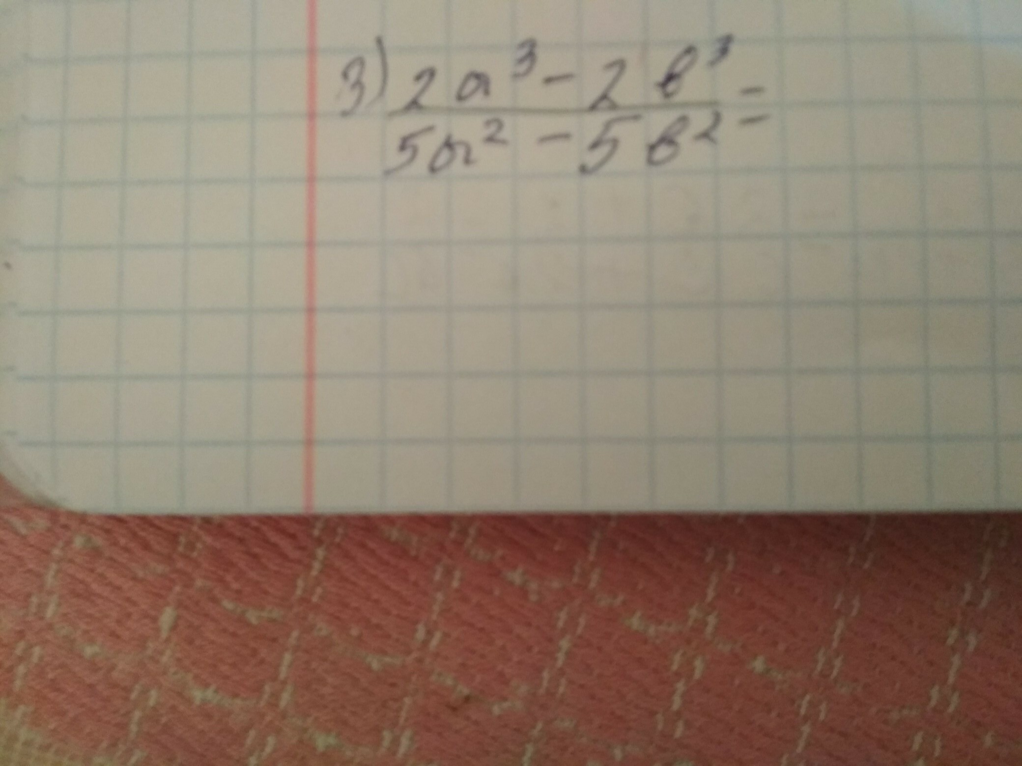 = frac{2( {a}^{3} -  {b}^{3})}{5( {a}^{2}  -  {b}^{2}) }  =  frac{2(a - b)( {a}^{2} + ab +  {b}^{2})  }{5(a - b)(a + b)}  =  frac{2( {a}^{2} + ab +  {b}^{2})  }{5(a + b)}